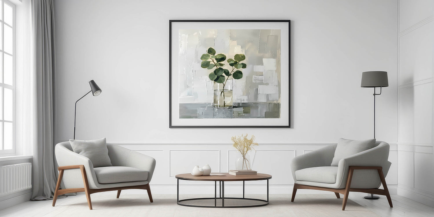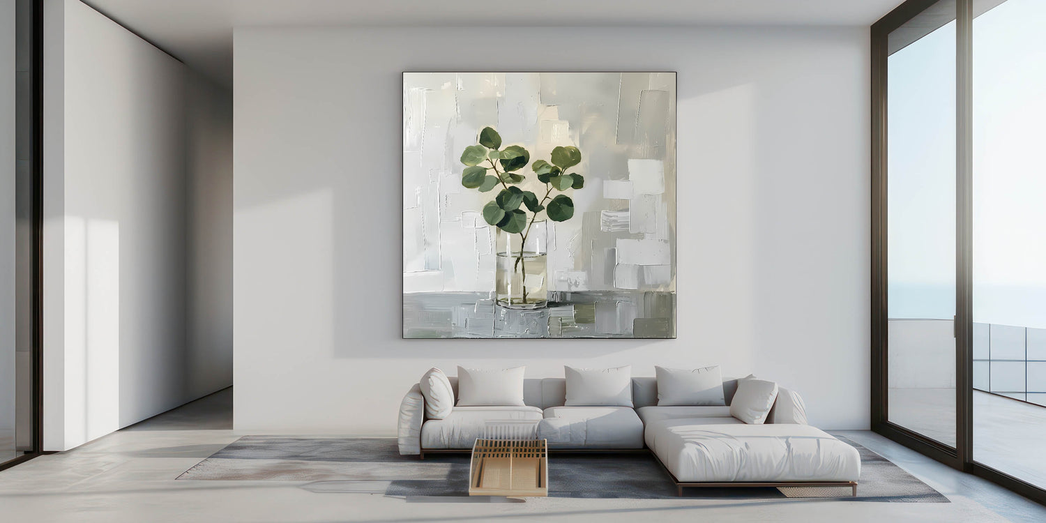 Minimalist Eucalyptus Wall Art - Modern Canvas for Living Room