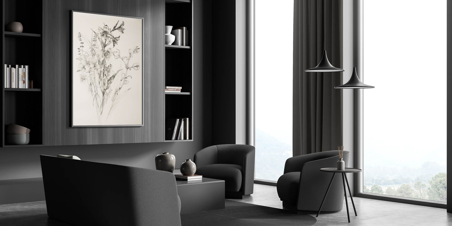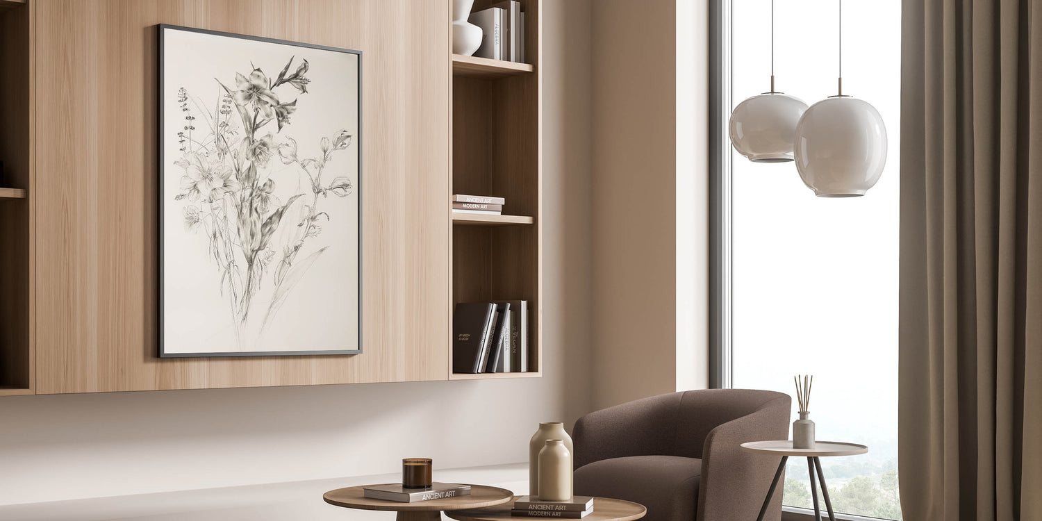 Minimalist Floral Living Room Wall Art – Black & White Sketch