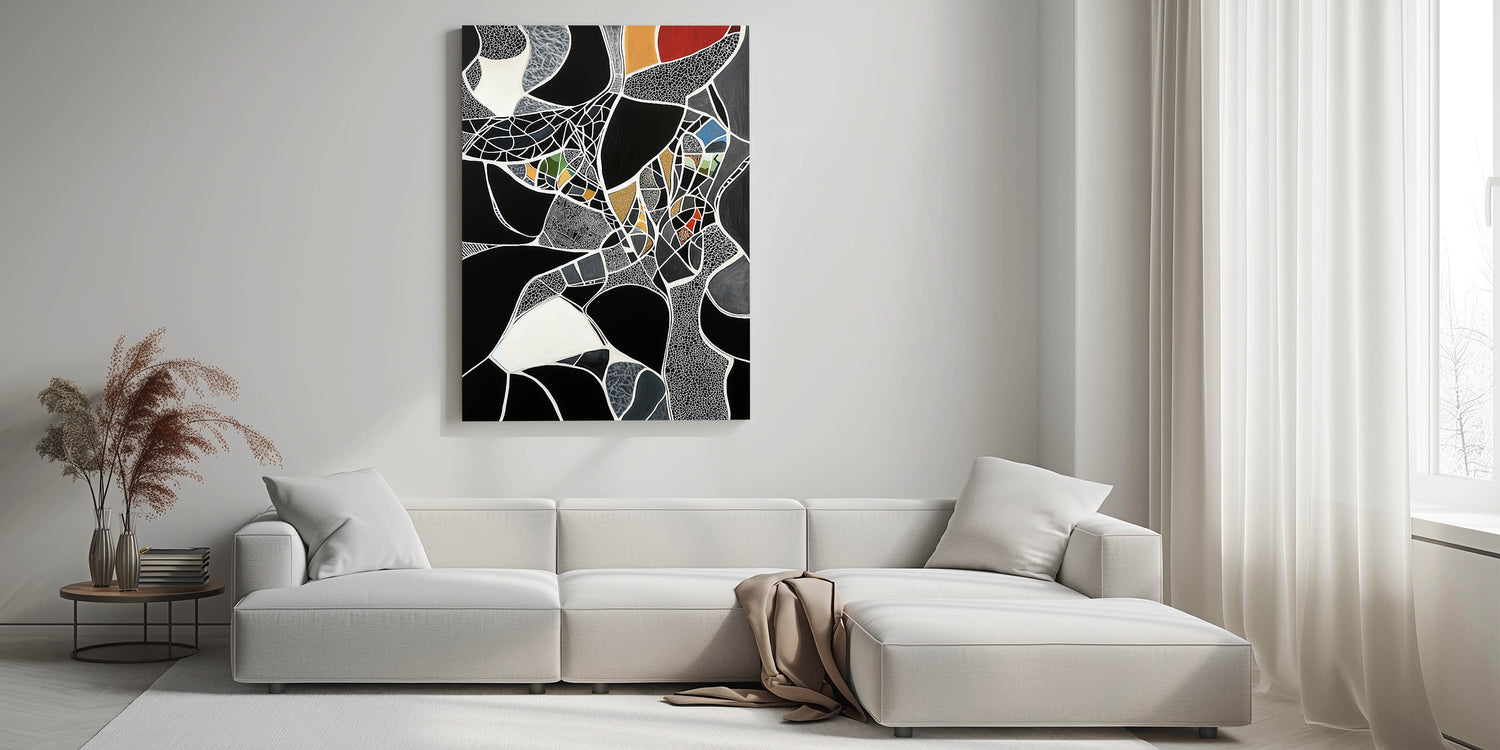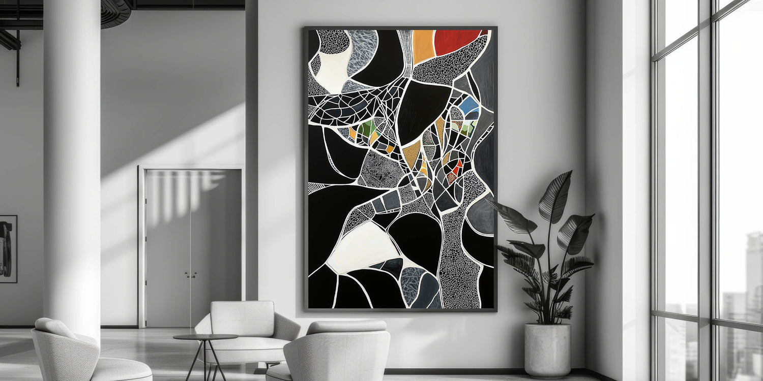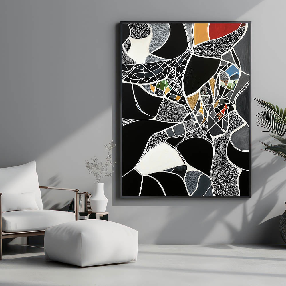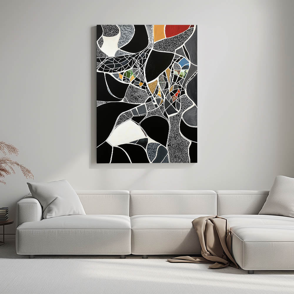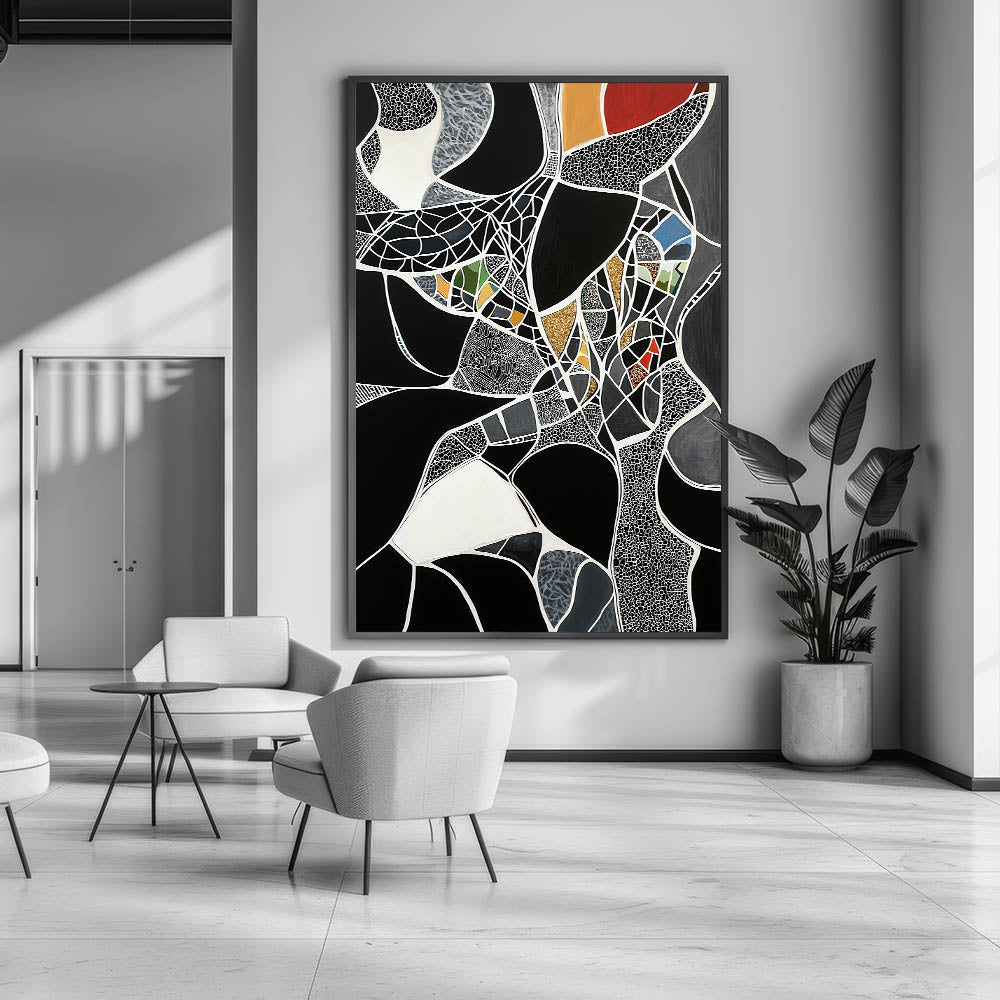 This large wall art piece combines bold contrast and intricate details, making it an elegant yet dynamic addition to any interior. Whether displayed as stretched canvas, framed wall art, or acrylic glass prints, this mosaic-inspired artwork adds an artistic edge to your home decor.