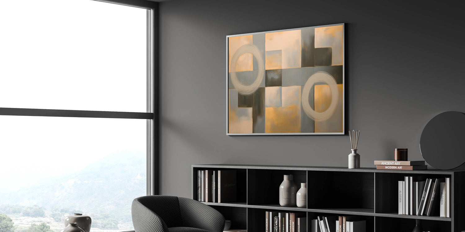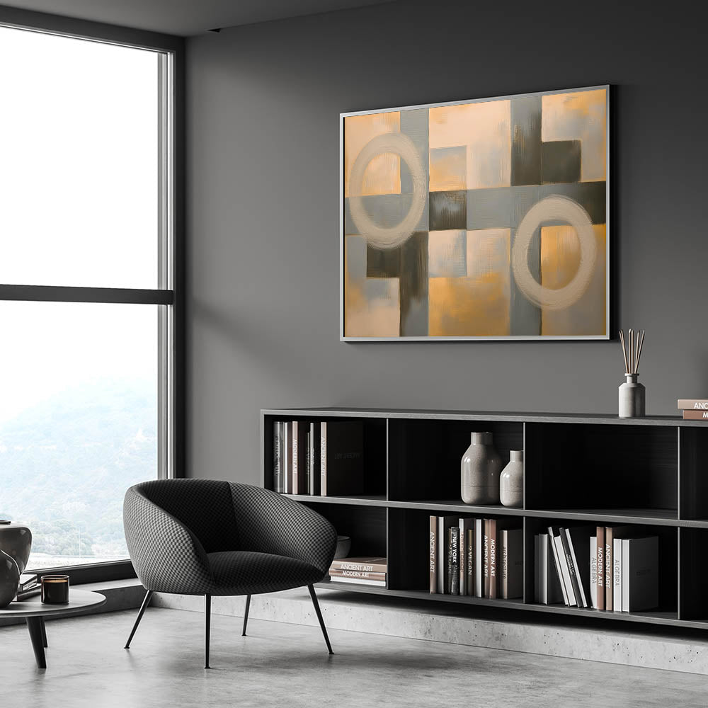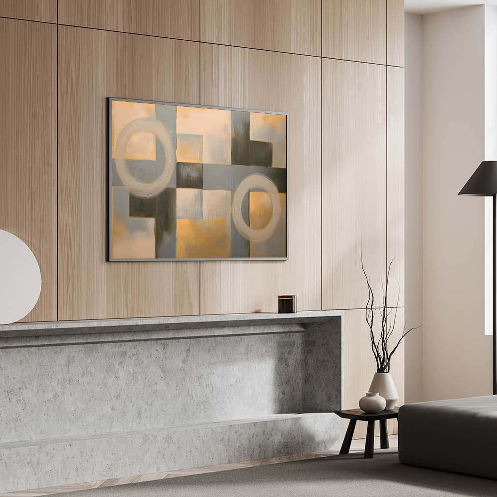 This large wall art piece embraces subtle textures and geometric balance, making it an ideal choice for those who appreciate refined simplicity. Whether displayed as stretched canvas, framed wall art, or acrylic glass prints, this artwork adds a sense of structure and warmth to any setting.