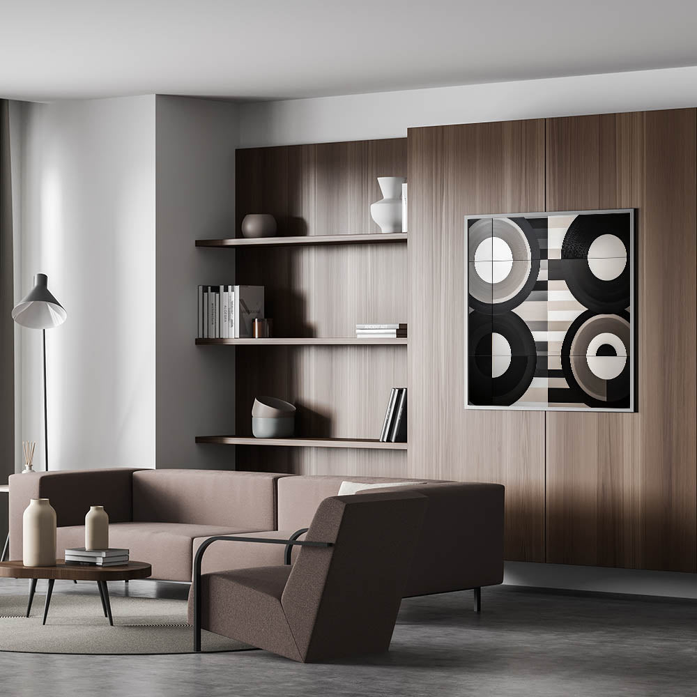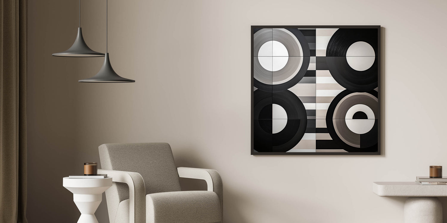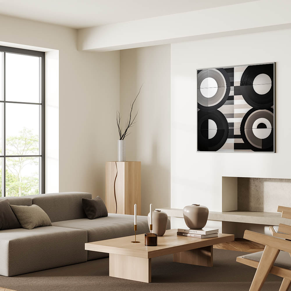 Make a bold statement with this Modern Monochrome Living Room Wall Art, featuring a striking geometric pattern in black, white, and gray. This abstract wall art blends contemporary design with sleek elegance, making it an ideal choice for those who appreciate modern living room decor.
