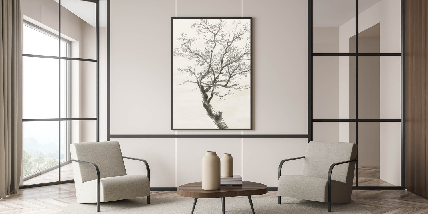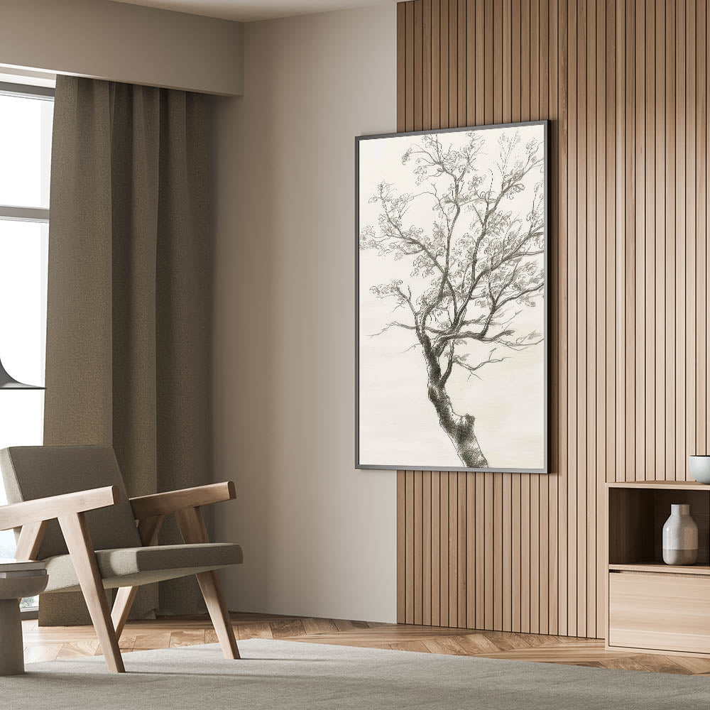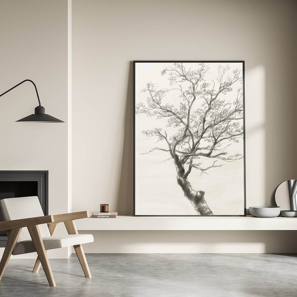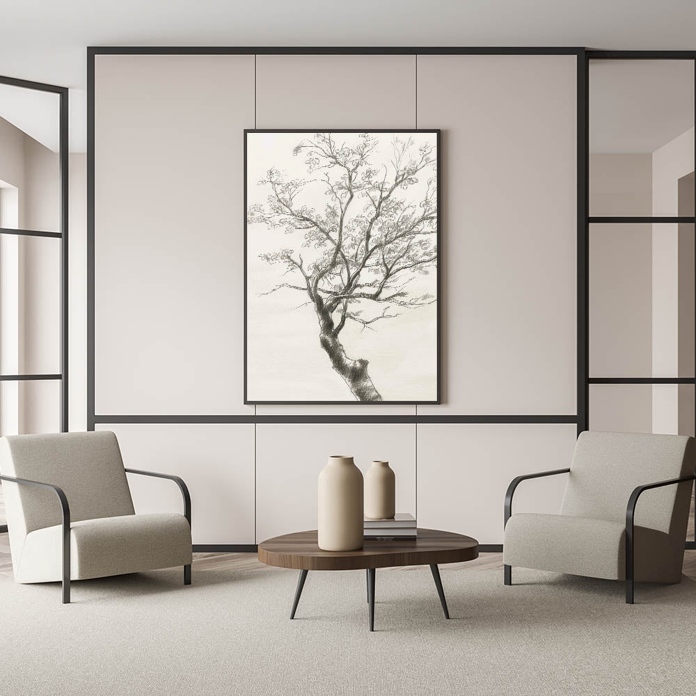 Enhance your living space with this sophisticated tree sketch wall art, a timeless blend of elegance and simplicity. This modern wall art captures the beauty of nature in black and white, making it a versatile addition to modern living room décor. Whether you choose canvas wall art, framed wall art, or acrylic glass, this contemporary art print brings a serene and artistic touch to any interior.