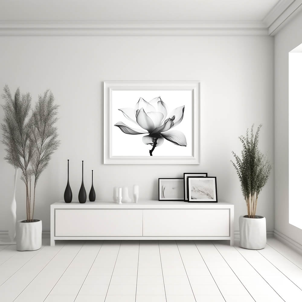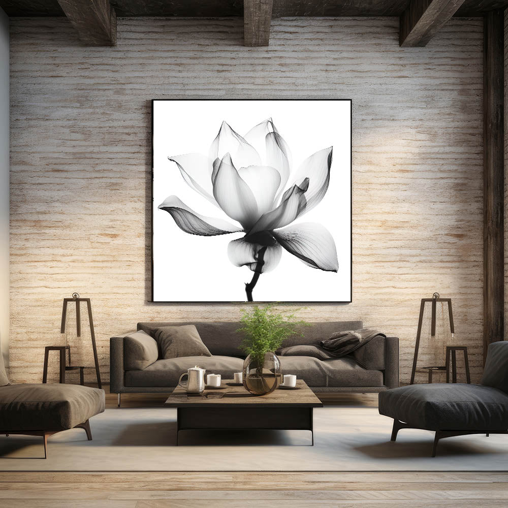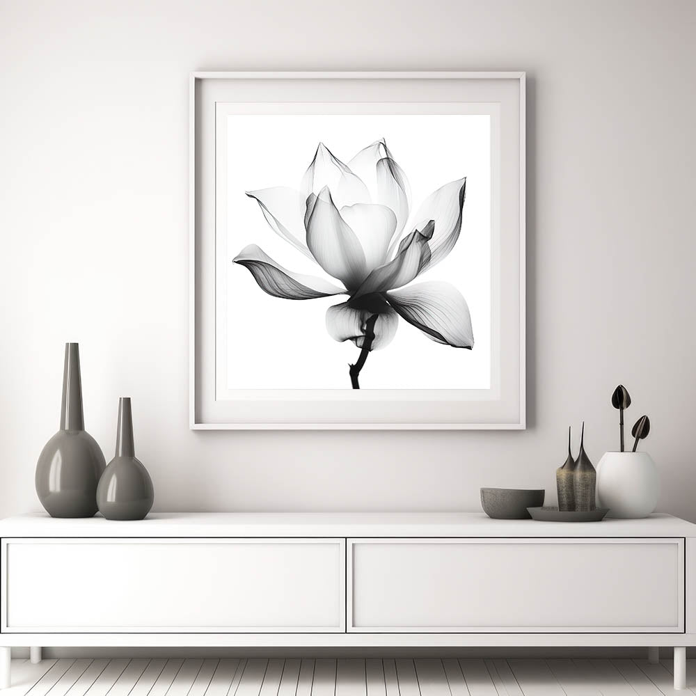 Add a touch of sophistication to your home with this Monochrome Lotus Abstract Wall Art, a stunning fusion of minimalism and elegance. This living room wall art features an intricate black-and-white lotus, highlighting delicate details and a sense of tranquility. Perfect for modern and contemporary spaces, this modern wall art offers a timeless aesthetic that blends effortlessly with any interior decor.