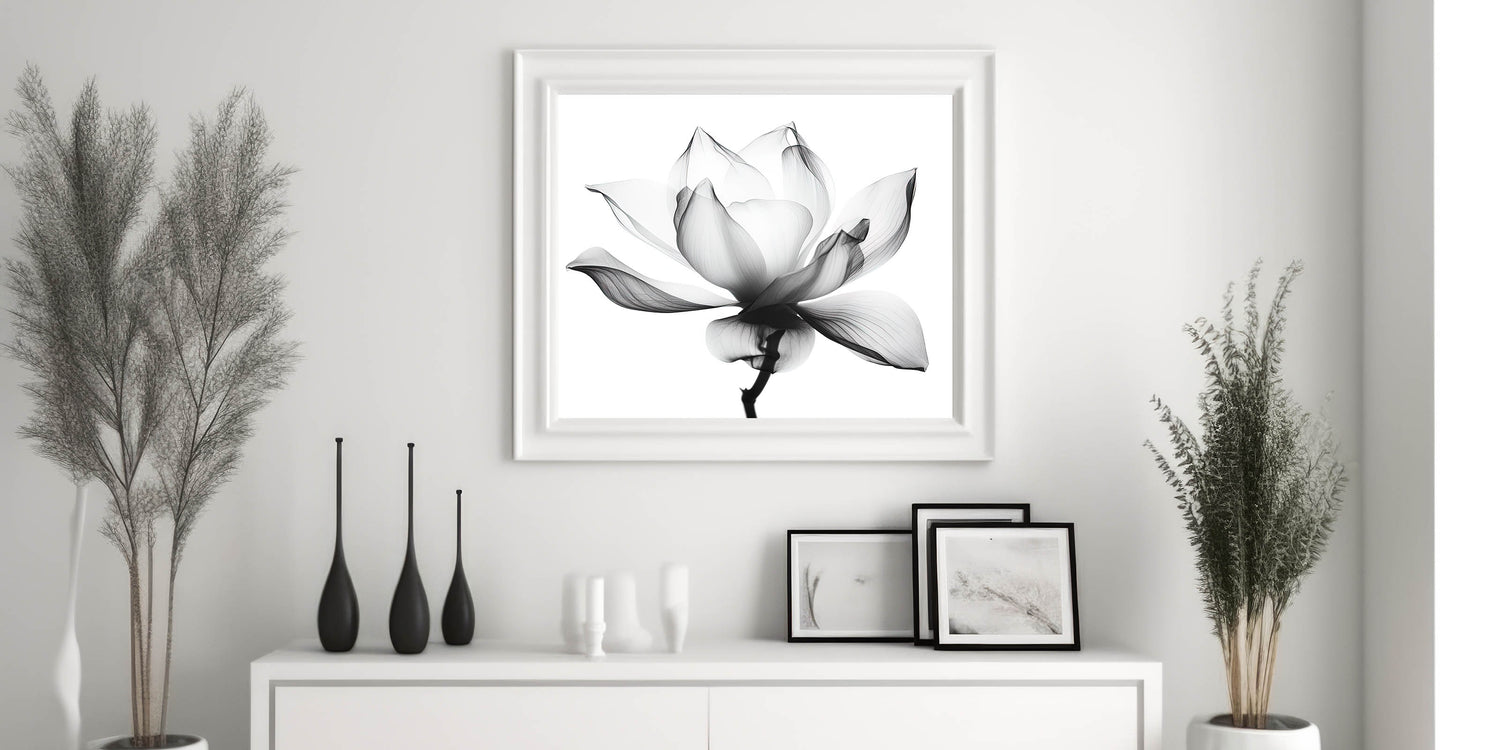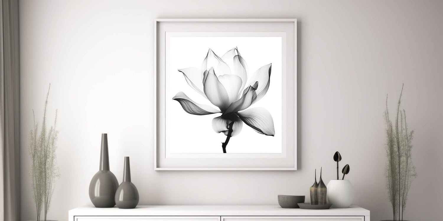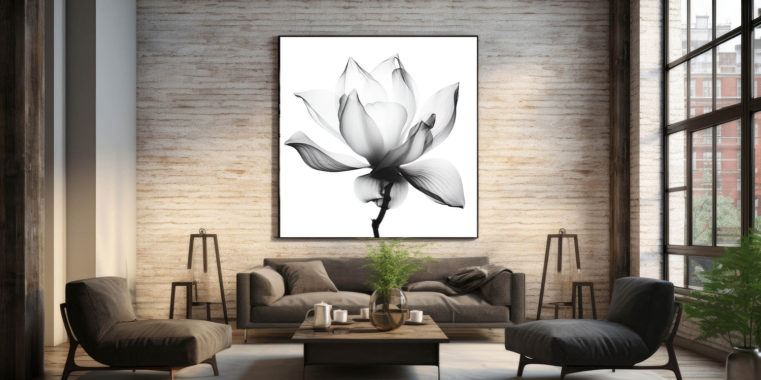 Add a touch of sophistication to your home with this Monochrome Lotus Abstract Wall Art, a stunning fusion of minimalism and elegance. This living room wall art features an intricate black-and-white lotus, highlighting delicate details and a sense of tranquility. Perfect for modern and contemporary spaces, this modern wall art offers a timeless aesthetic that blends effortlessly with any interior decor.