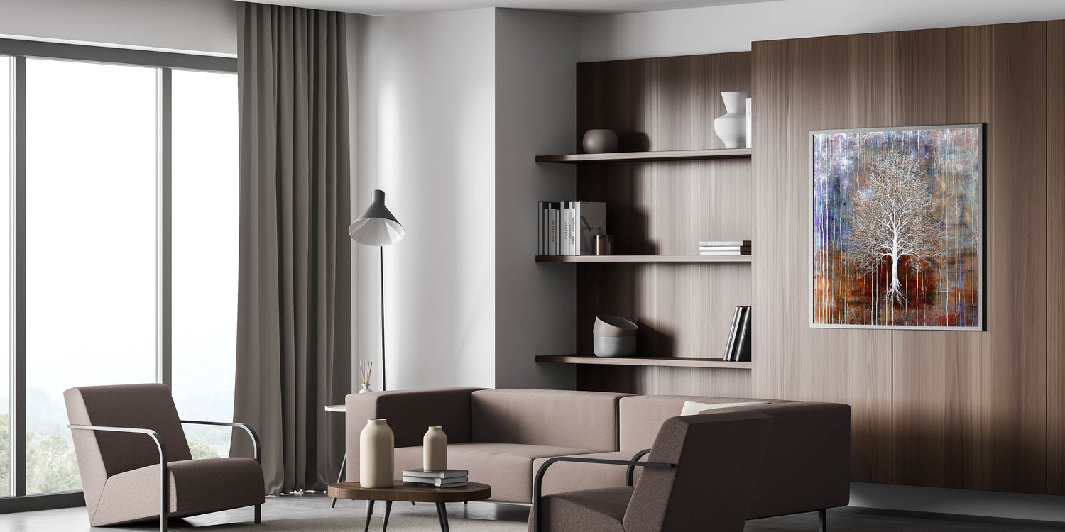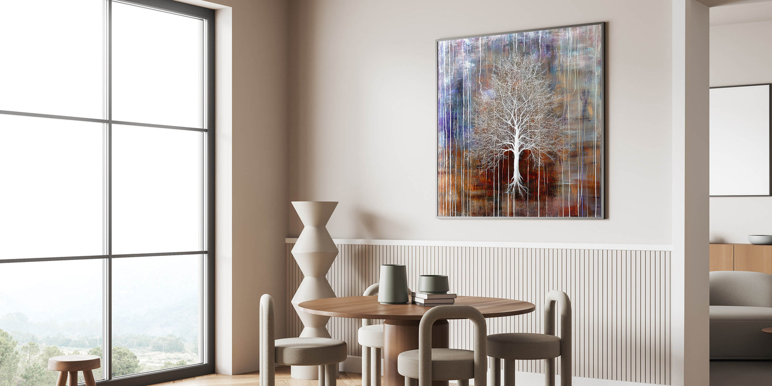 This large canvas art fits seamlessly into rustic, industrial, and bohemian décor. Whether you're searching for contemporary art prints or a timeless abstract art piece, this tree painting will bring warmth, depth, and beauty to your home.