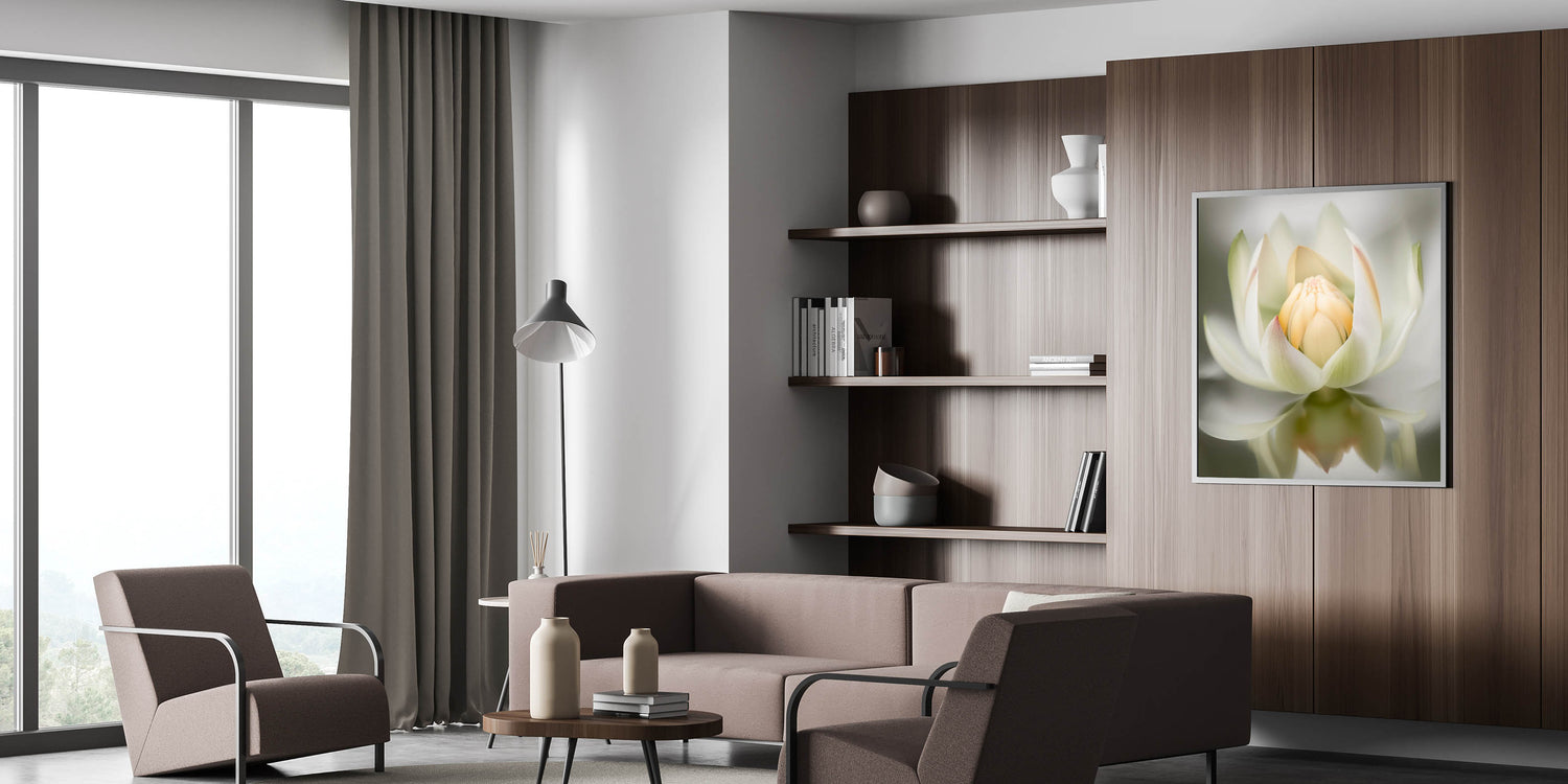 This large wall art is perfect for those who appreciate nature-inspired contemporary art prints. Whether you're styling a minimalist, Zen, or spa-like interior, this lotus flower artwork adds a refined and calming presence to your space.