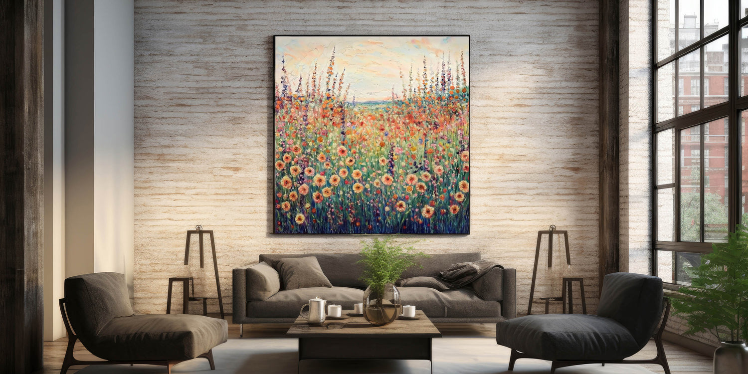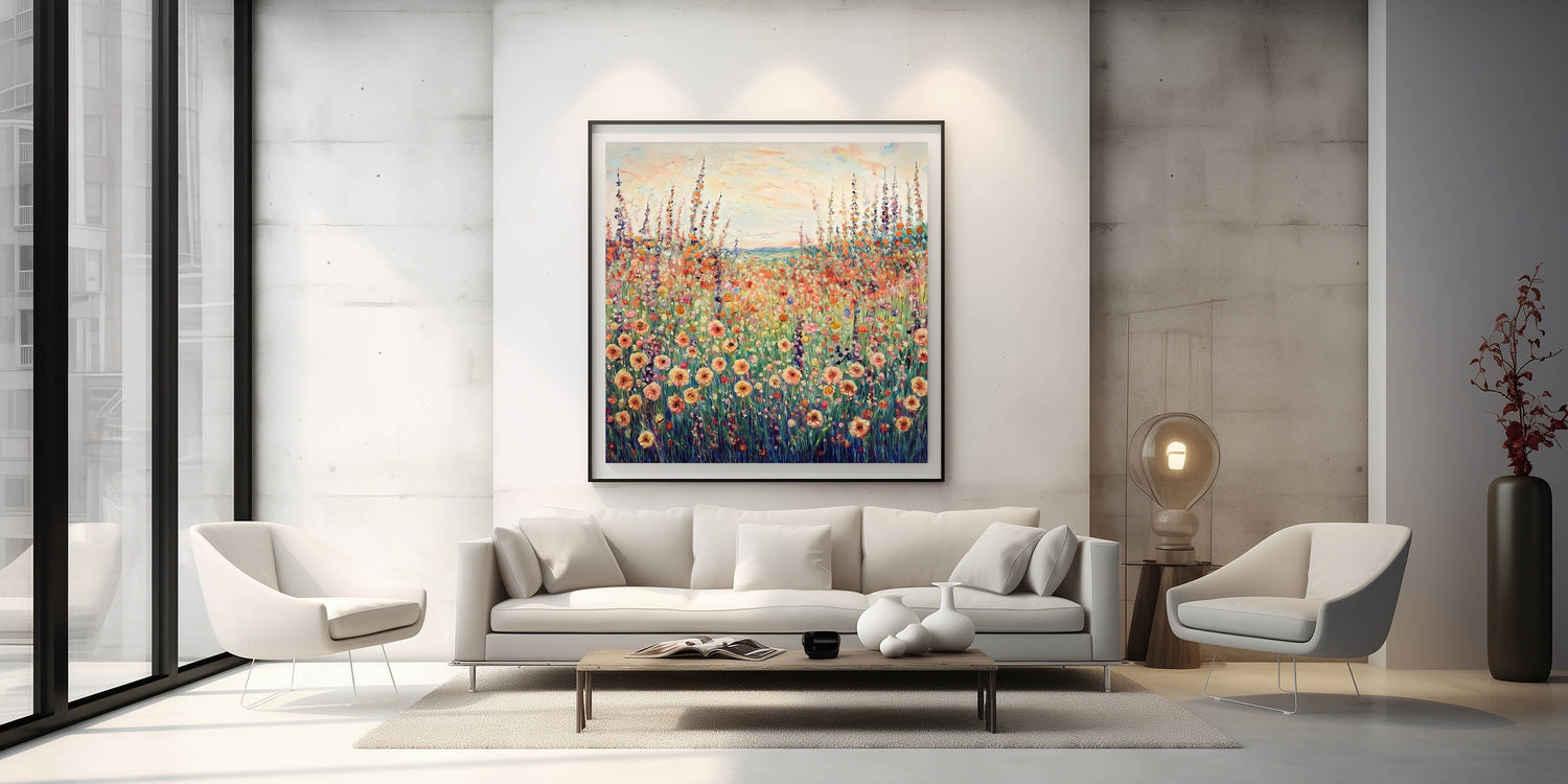 Serene Wildflower Meadow Wall Art – Modern Canvas & Framed Print