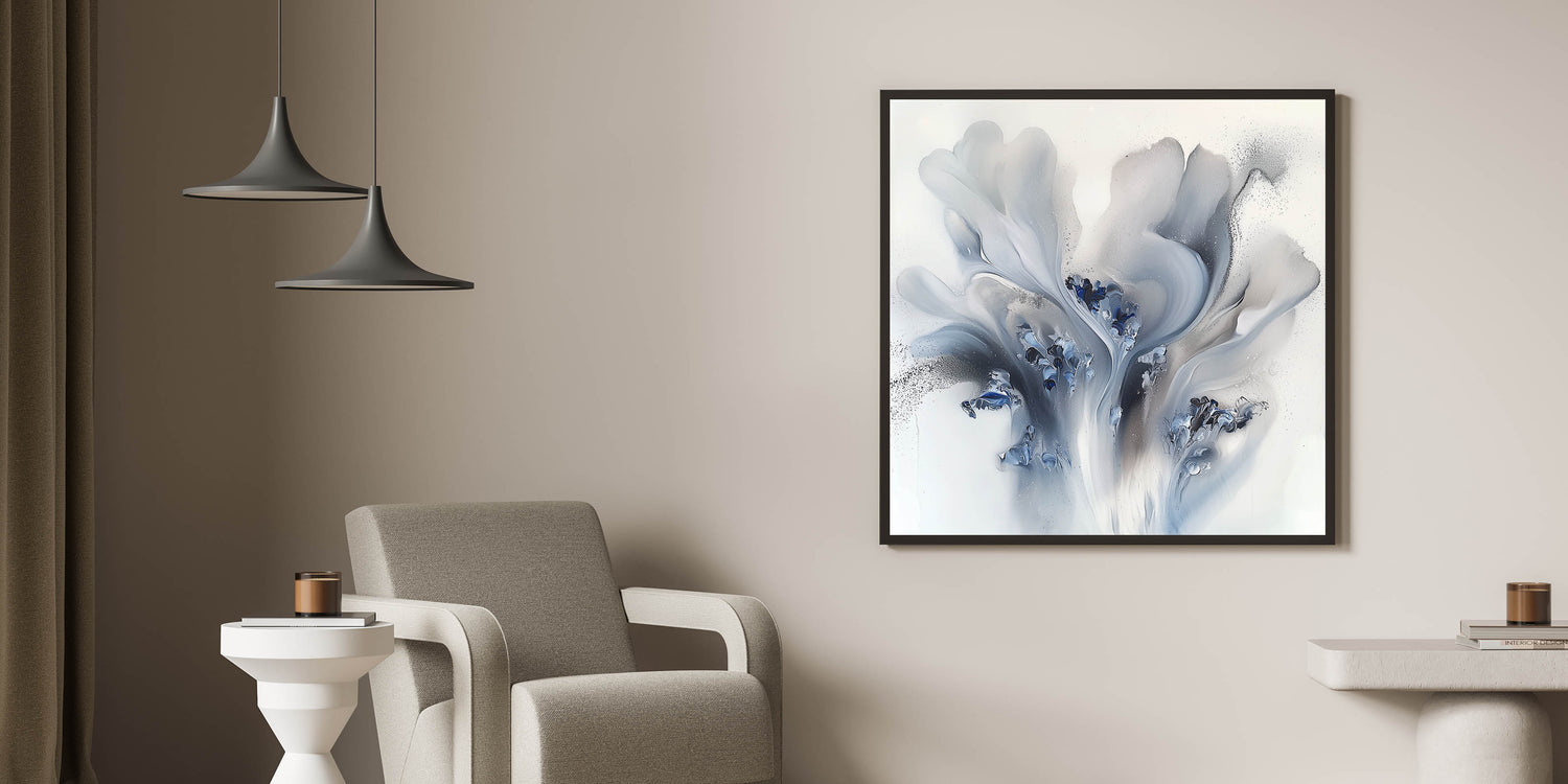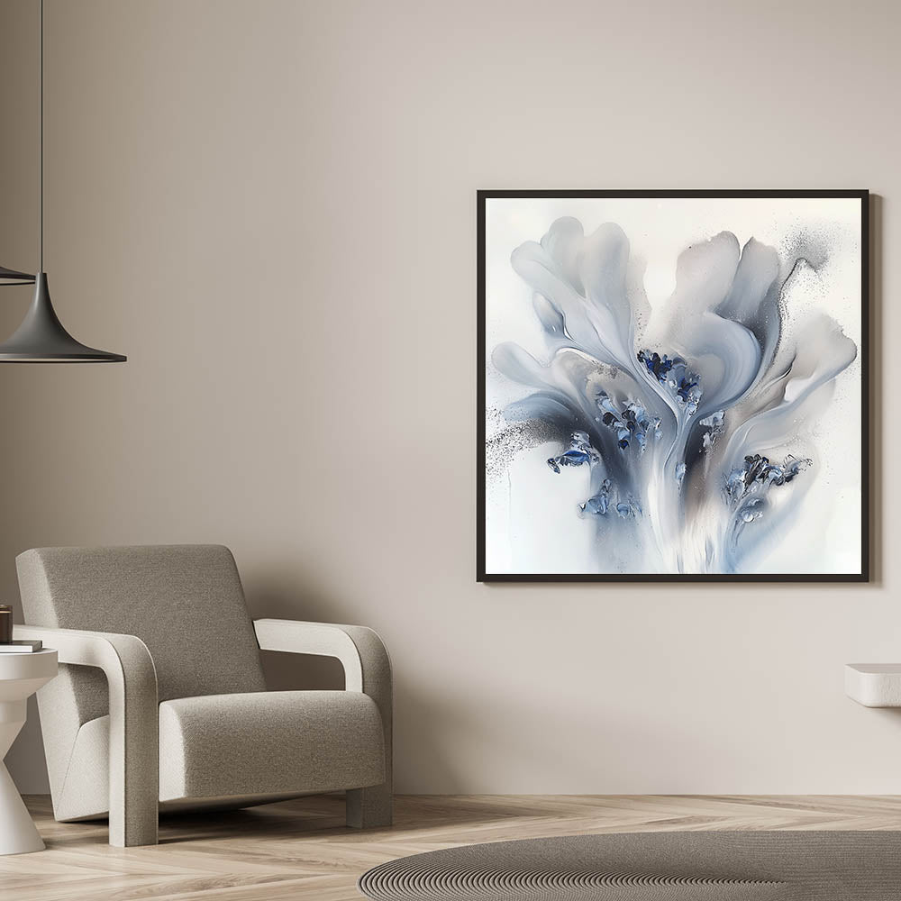 Enhance your space with this living room wall art, featuring a captivating abstract design in gray, dark blue, and black. The fluid motion and delicate color transitions create a dynamic yet refined aesthetic, making this modern wall art a perfect focal point for contemporary interiors. Whether displayed as canvas wall art or framed wall art, this piece adds sophistication and artistic depth to any space.