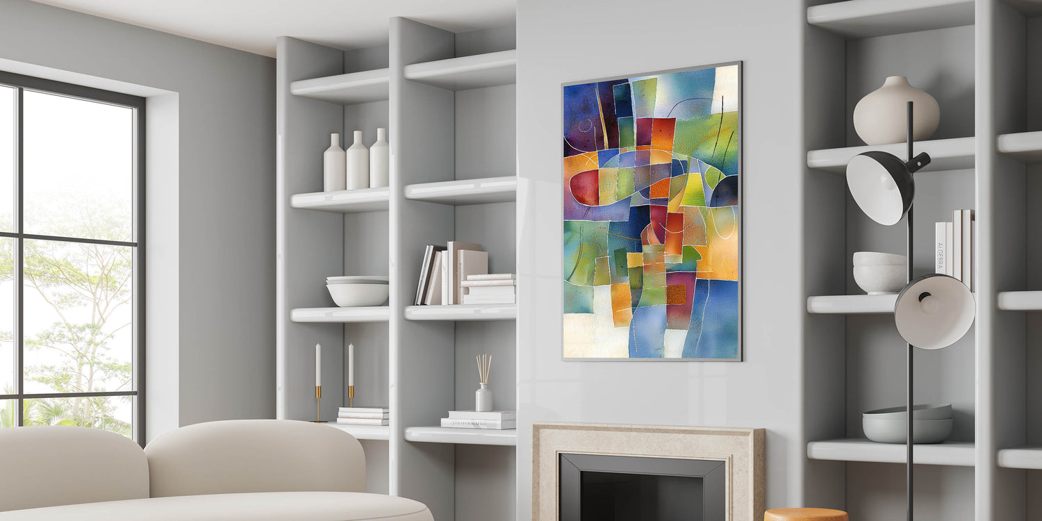 - A mix of Contemporary Art Prints and structured geometric abstraction