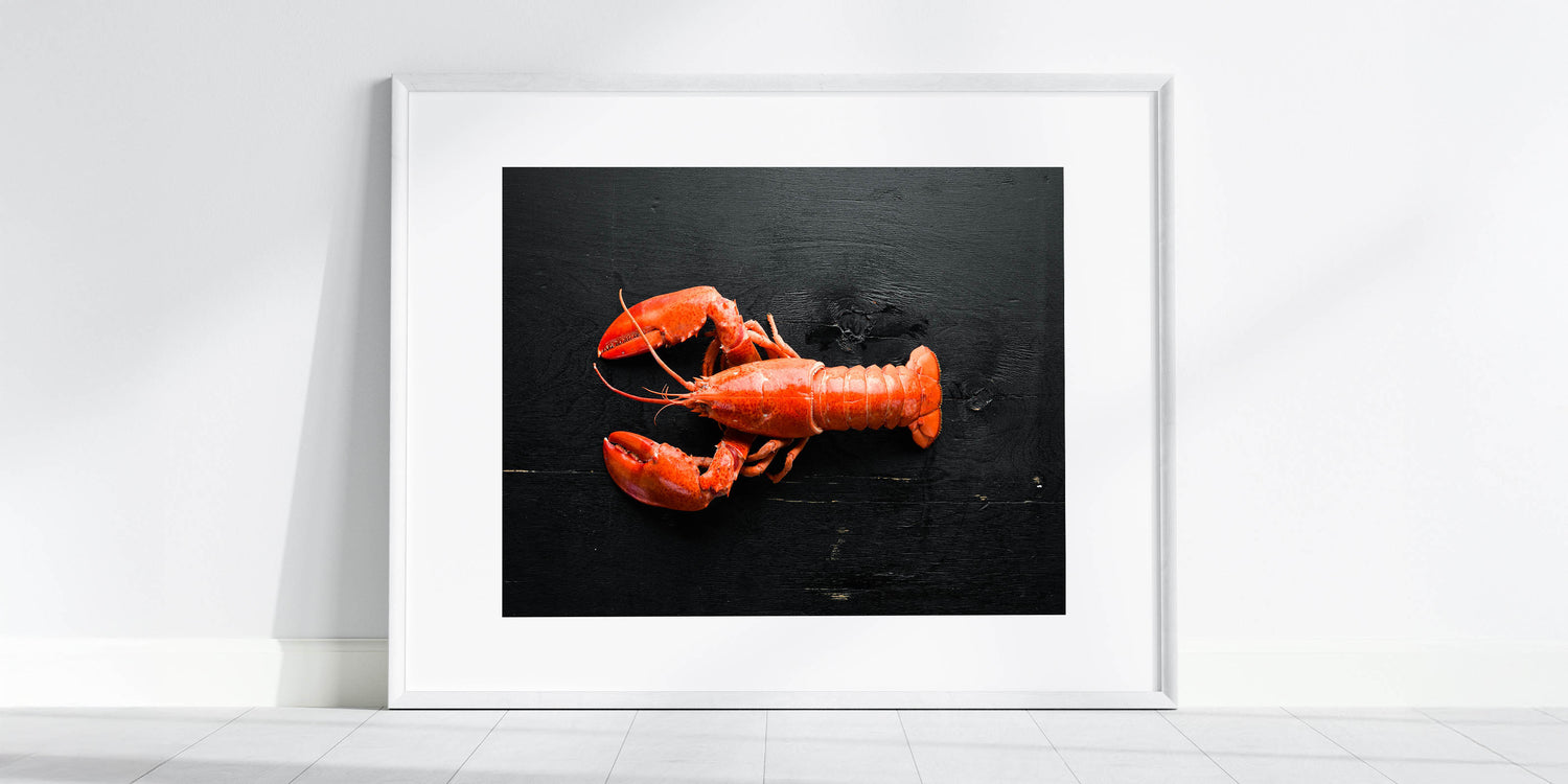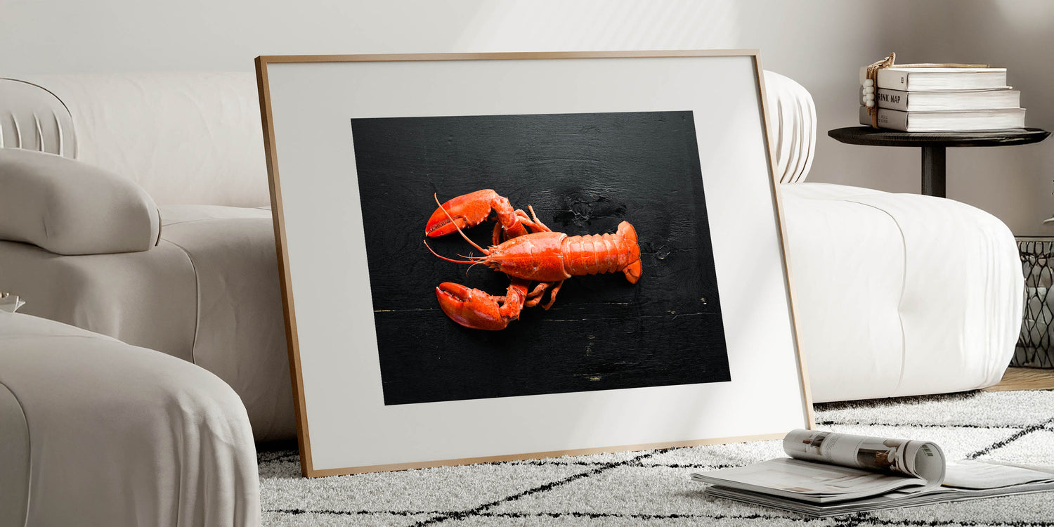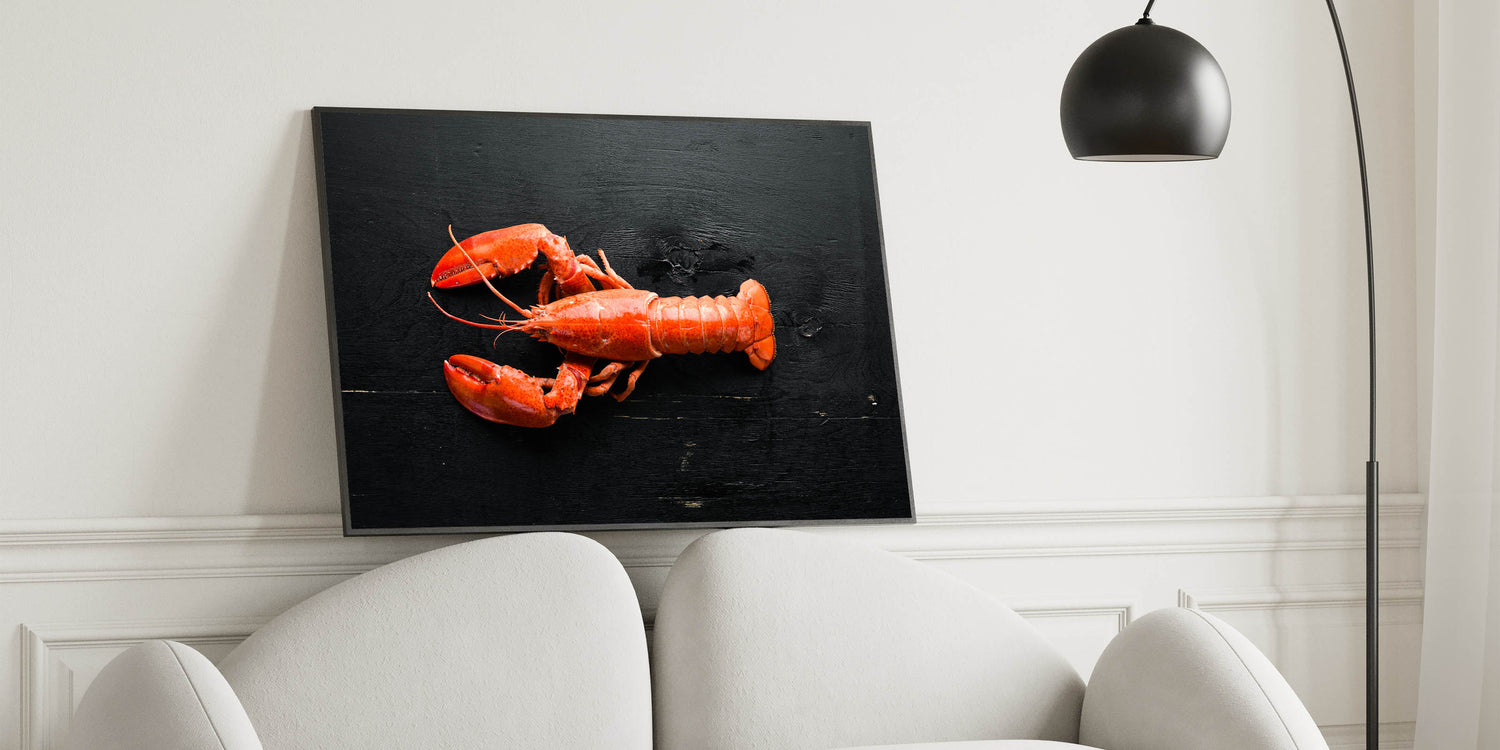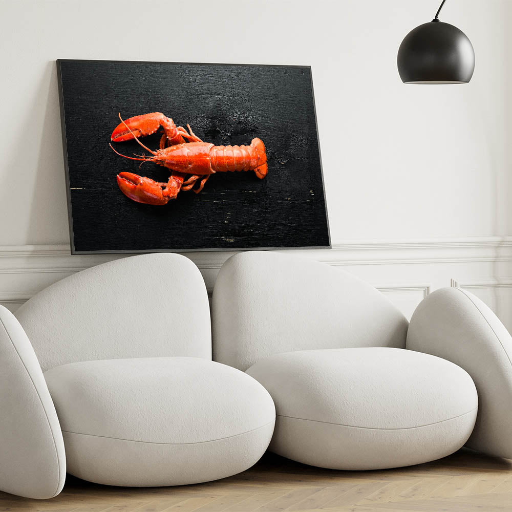 - The rich contrast between the lobster and the background adds depth and drama to any room.