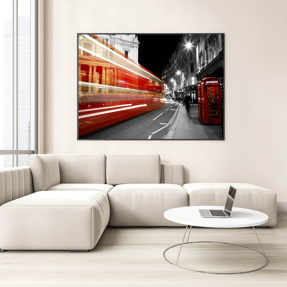 Whether you're looking to add a bold focal point to your space or simply want to bring a piece of London into your home, this London artwork is a perfect choice. Its dramatic contrast and iconic imagery make it a timeless addition to any room.