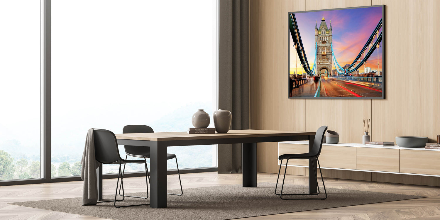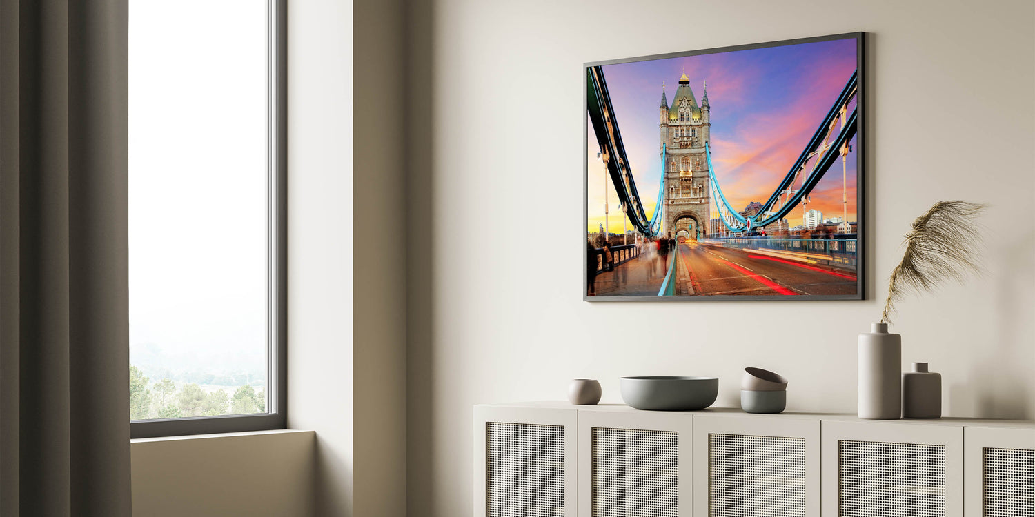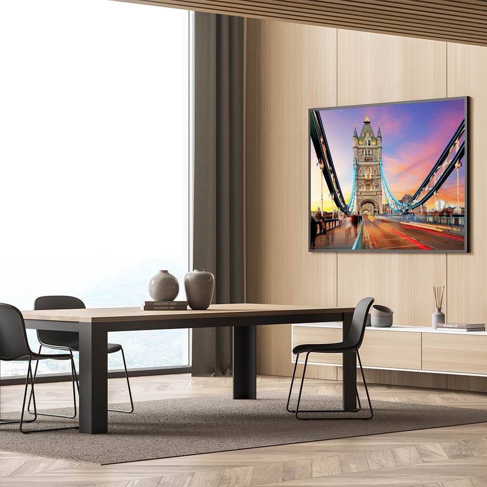 Experience the magic of London’s iconic Tower Bridge at sunset with this breathtaking artwork. The warm hues of the setting sun create a stunning contrast against the cool tones of the bridge, while the dynamic movement of the people and vehicles brings the scene to life. This piece of London photography art captures the essence of the city, blending historic beauty with modern vibrancy.