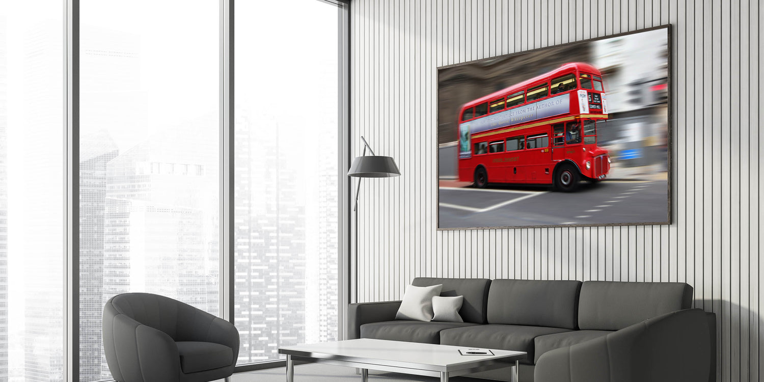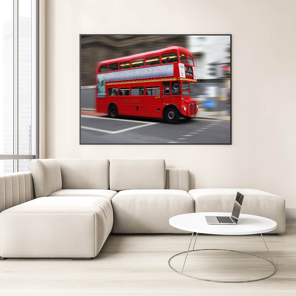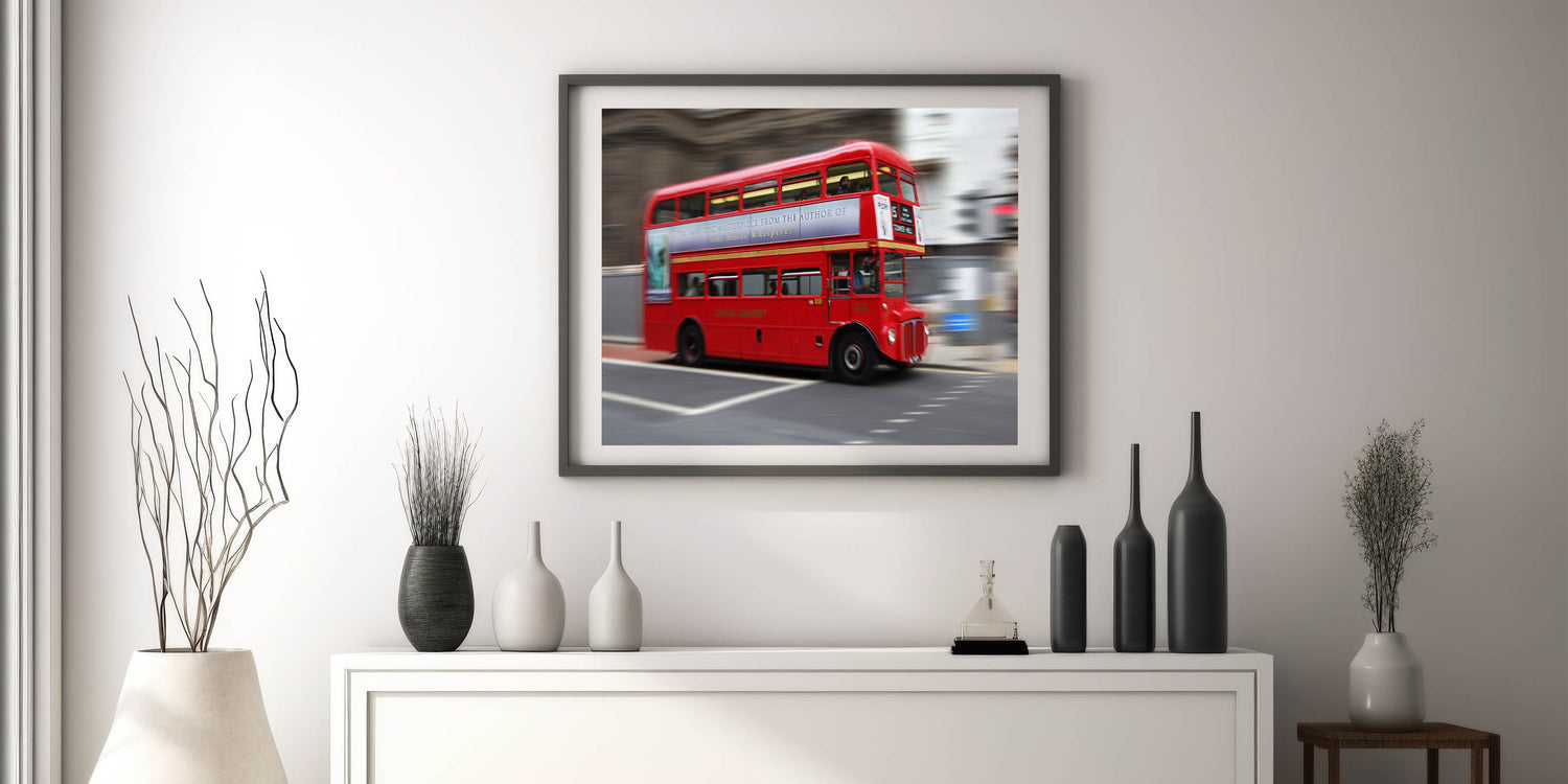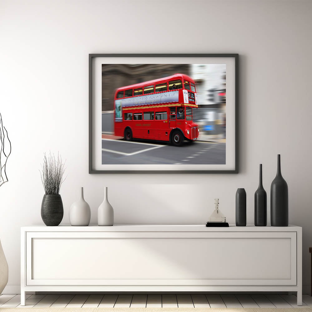 Capture the essence of London’s lively streets with this striking artwork featuring the iconic red double-decker bus in motion. This dynamic piece of London photography art brings the bustling energy of the city into your home. The artwork perfectly encapsulates the charm of urban London scenes and is a fantastic addition to any space seeking a contemporary London art vibe.