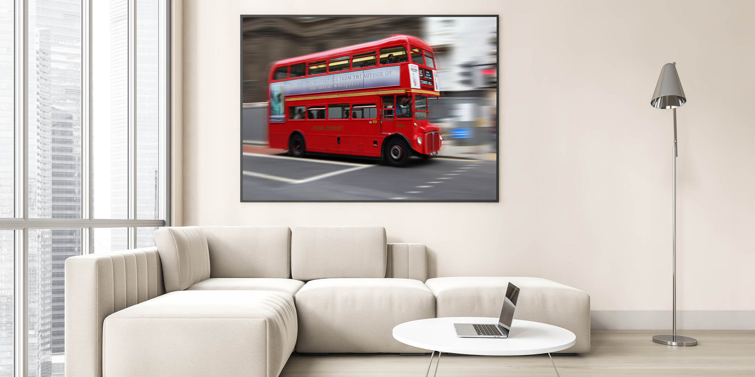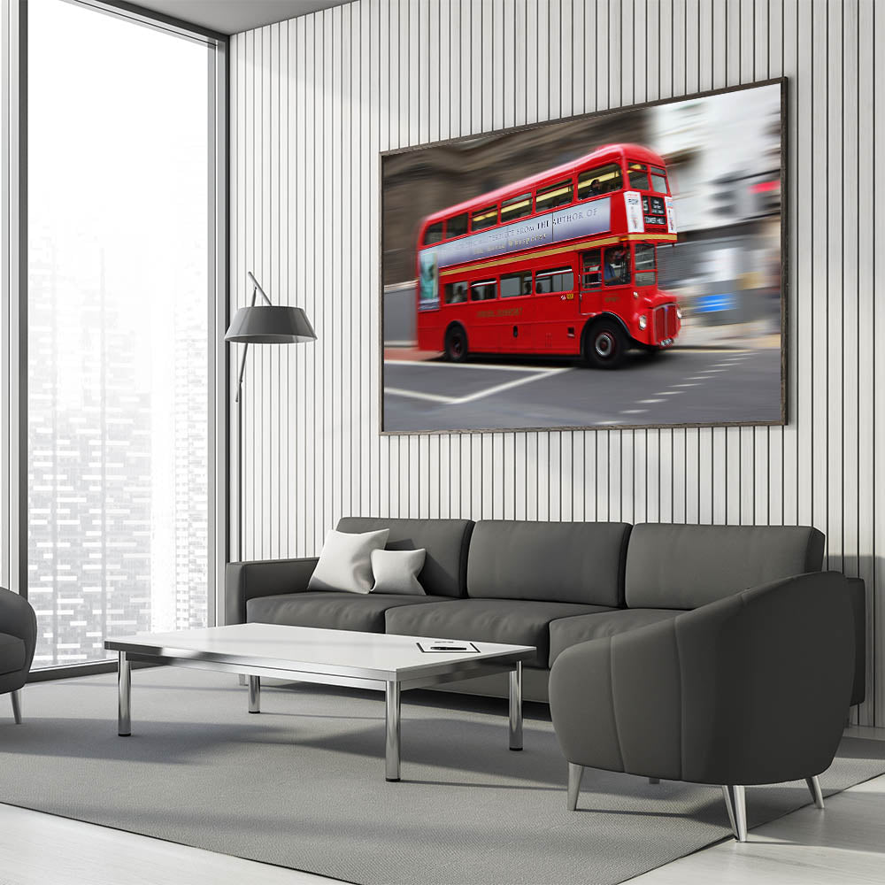 - High-quality print of the iconic red bus, symbolizing London's rich heritage.