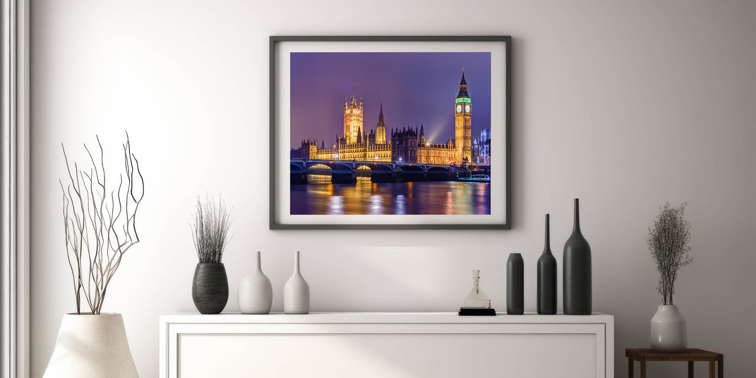London Wall Art - Big Ben and Westminster Night Cityscape