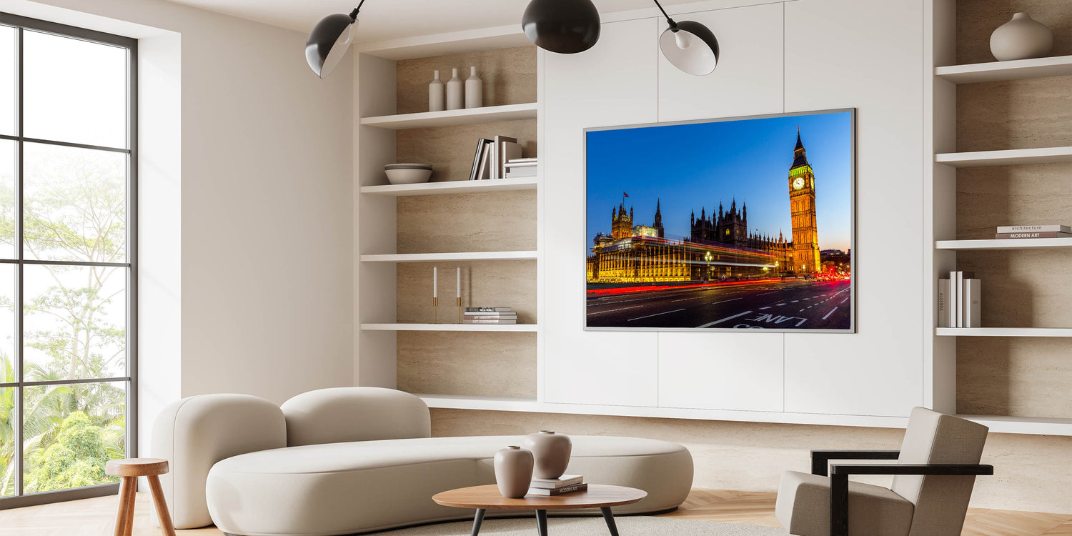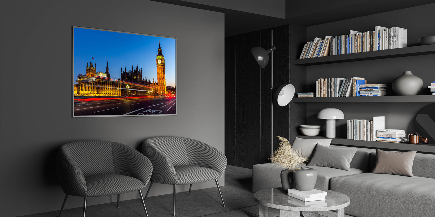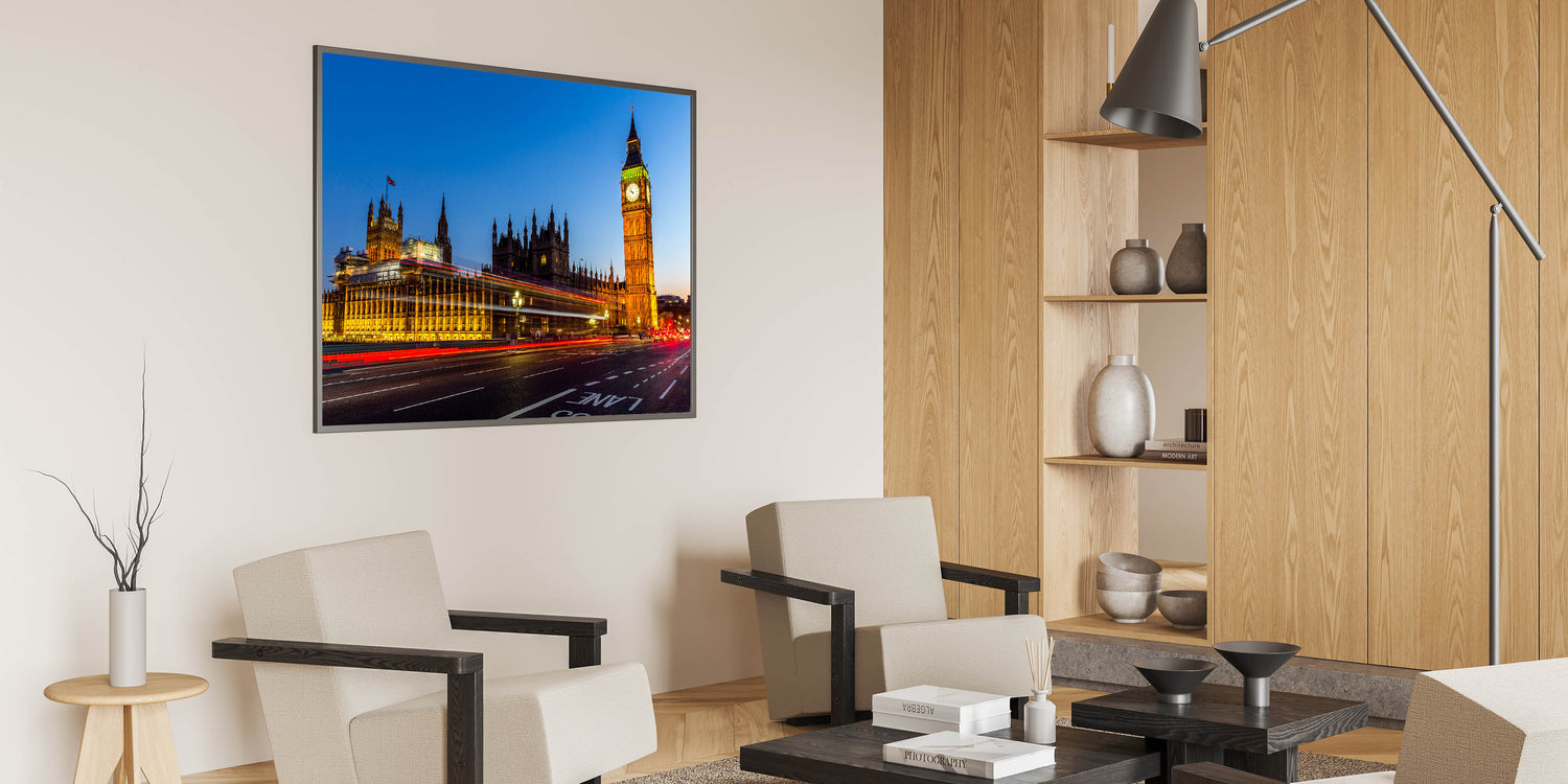 - High-quality London wall art available in various formats: Stretched Canvas, Framed Canvas, Acrylic Glass, Framed Acrylic Glass, Framed Print, Rolled Canvas, and Rolled Print.