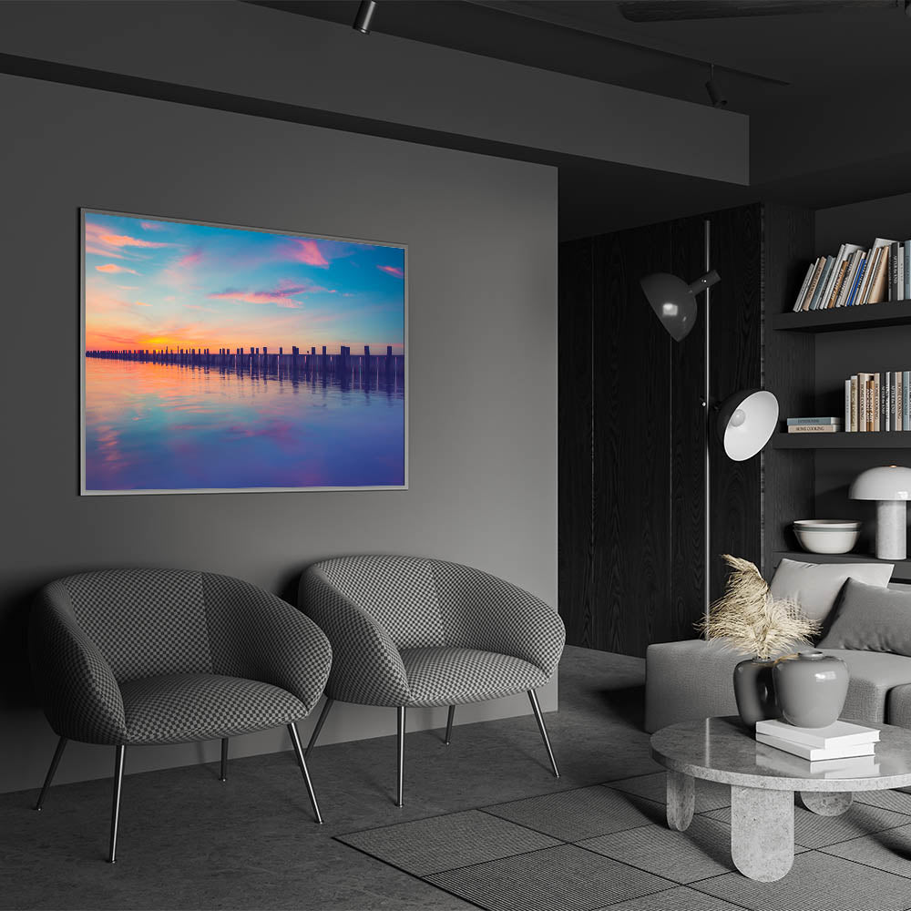 Add a touch of serenity to your space with this stunning Long Island Scenic Print featuring a tranquil sunset over a quiet pier. The soft, pastel hues of the sky create a calming atmosphere, perfect for coastal decor lovers. This Long Island beach photography captures the beauty of New York’s shoreline at sunset, offering a timeless coastal aesthetic for your home or office. Available in formats such as stretched canvas, framed prints, and acrylic glass, this piece brings the peaceful charm of New York island scenery to life.