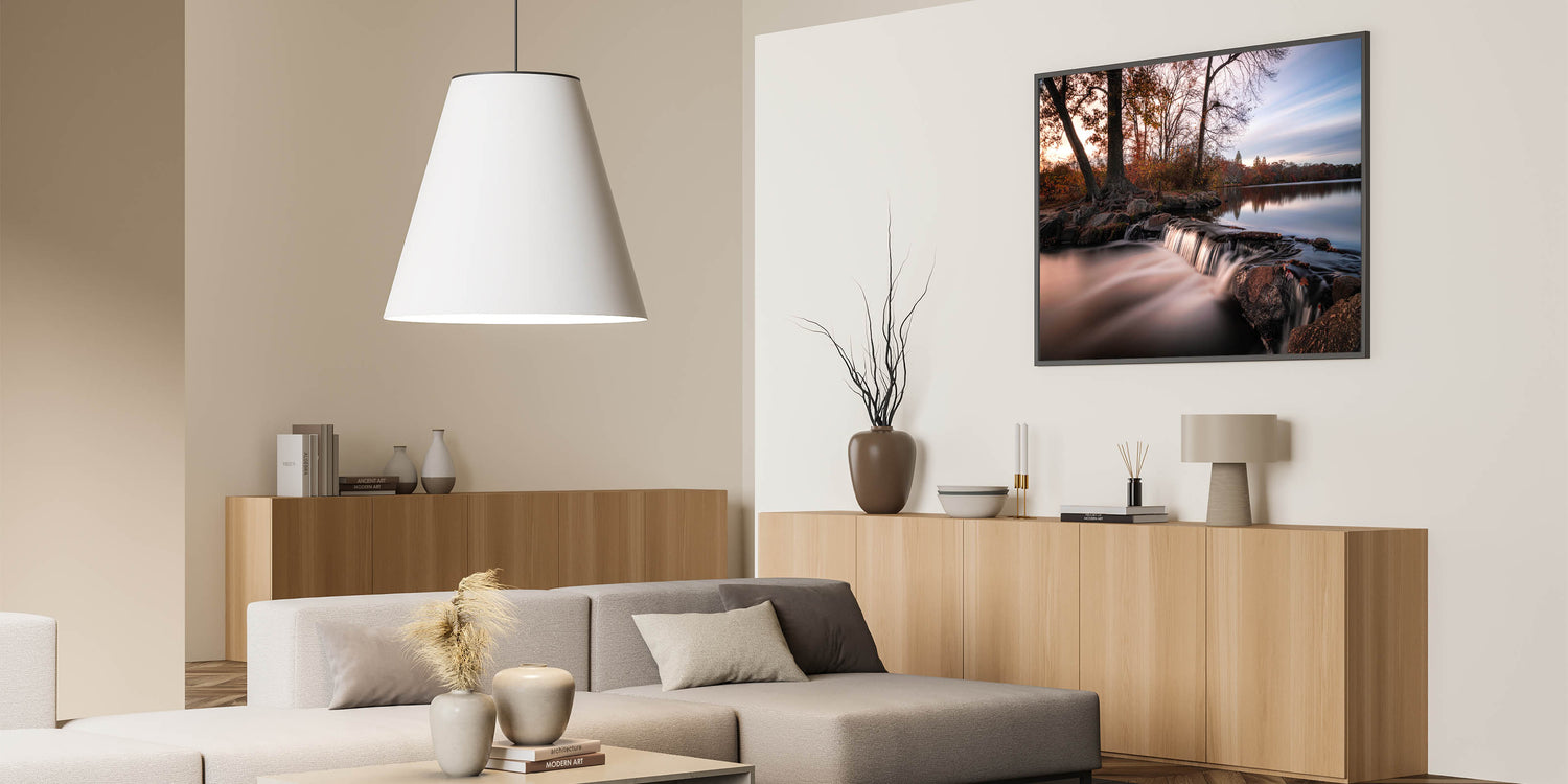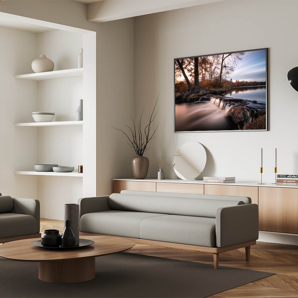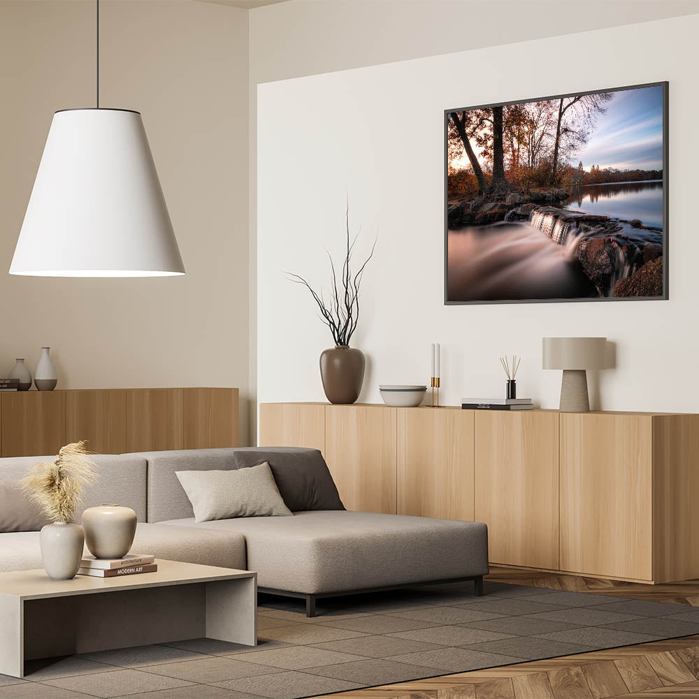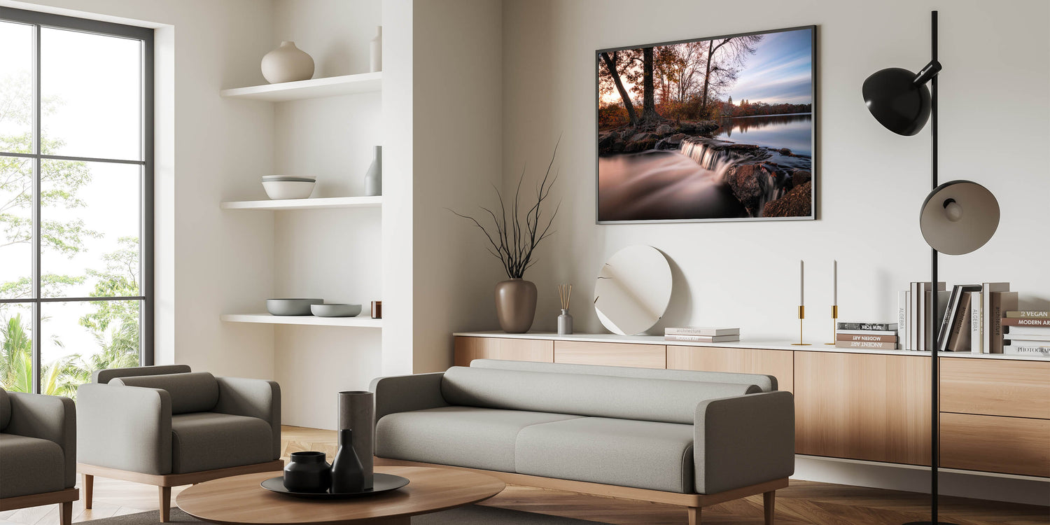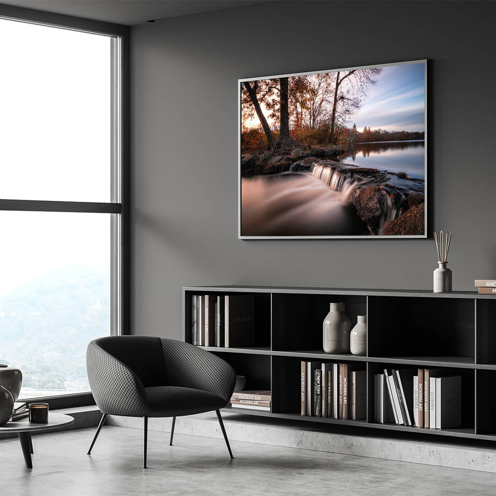 Immerse yourself in the serene beauty of Long Island’s natural landscapes with this tranquil New York Wall Art. Featuring a gentle waterfall cascading over rocks at dusk, this piece captures the calming essence of nature. Surrounded by lush trees and still waters, this artwork offers a perfect touch of Long Island scenic prints for any space in need of a peaceful atmosphere. Ideal for nature lovers and those seeking to add New York island scenery to their home or office, this print is available in various formats, including stretched canvas, framed prints, and acrylic glass.