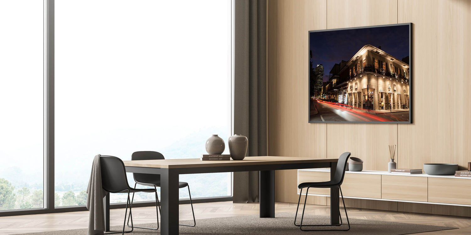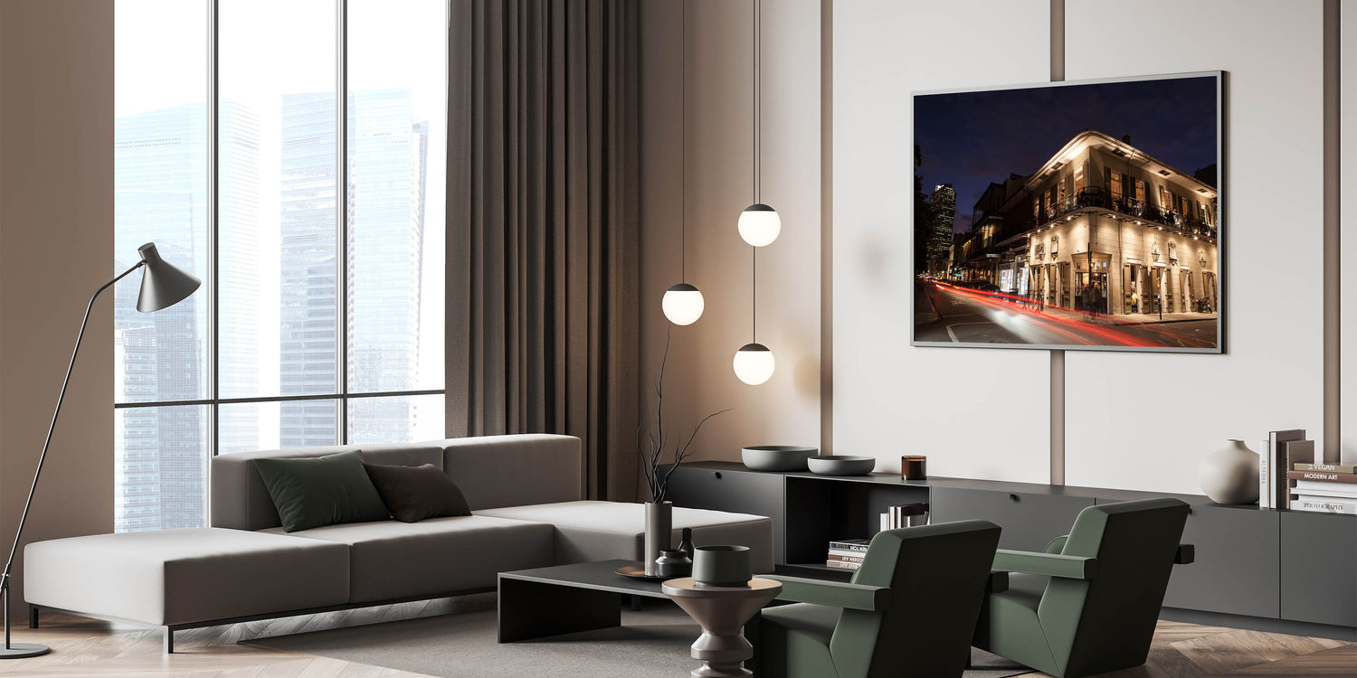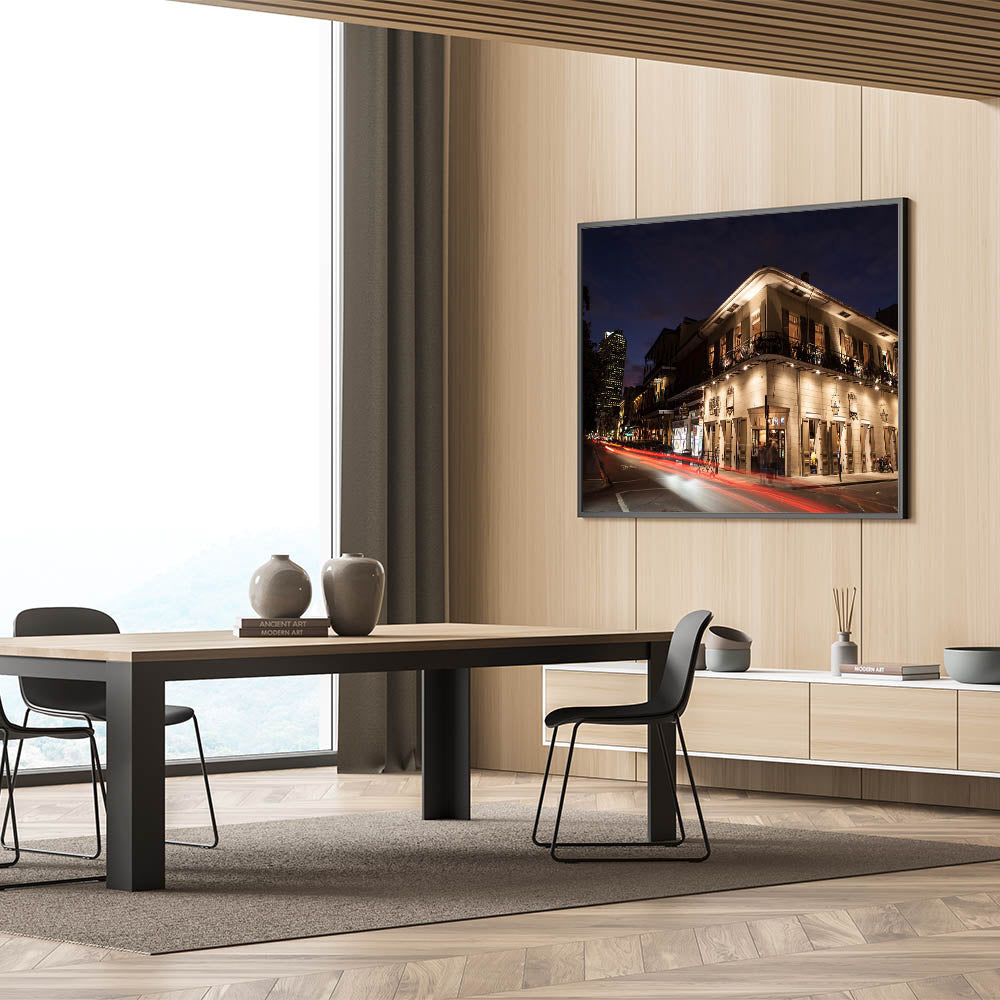 Experience the mystique and charm of New Orleans' French Quarter with this stunning night scene wall art. This artwork captures the elegance of historic buildings and lively streets, illuminated by soft lights against the backdrop of the city’s skyline. Perfect for those who love the rich cultural history of New Orleans, this piece brings the essence of the Crescent City into any space.