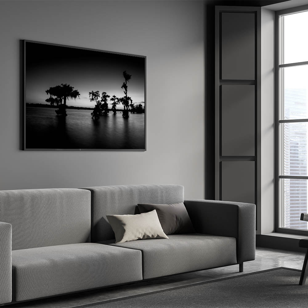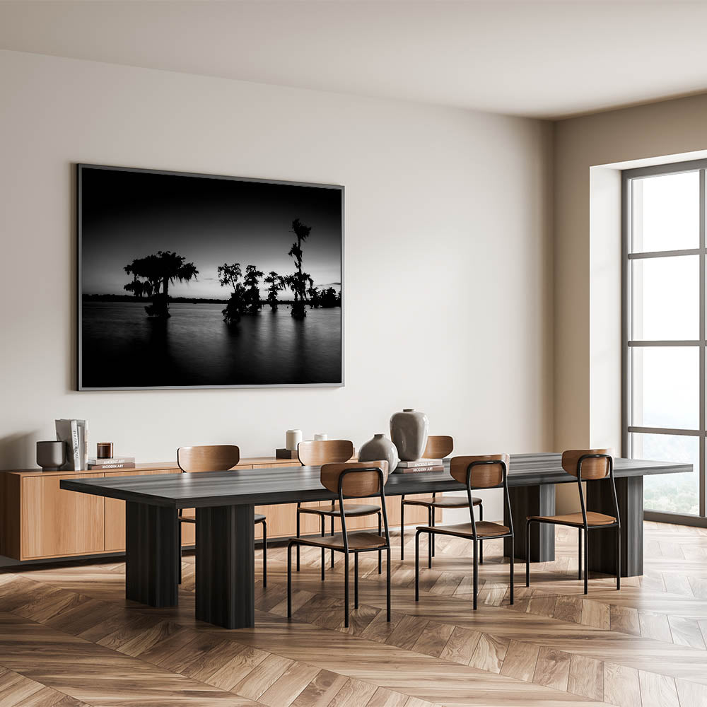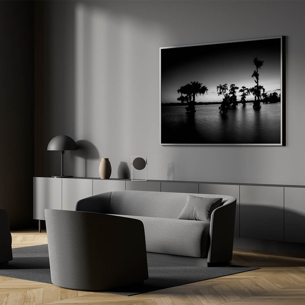This Louisiana Scenic Photography artwork is a perfect fit for modern interiors, minimalist decor, or any space that celebrates the beauty of nature. Its timeless black-and-white palette brings a sense of calm and reflection to any environment, making it a versatile and stunning addition to your wall.