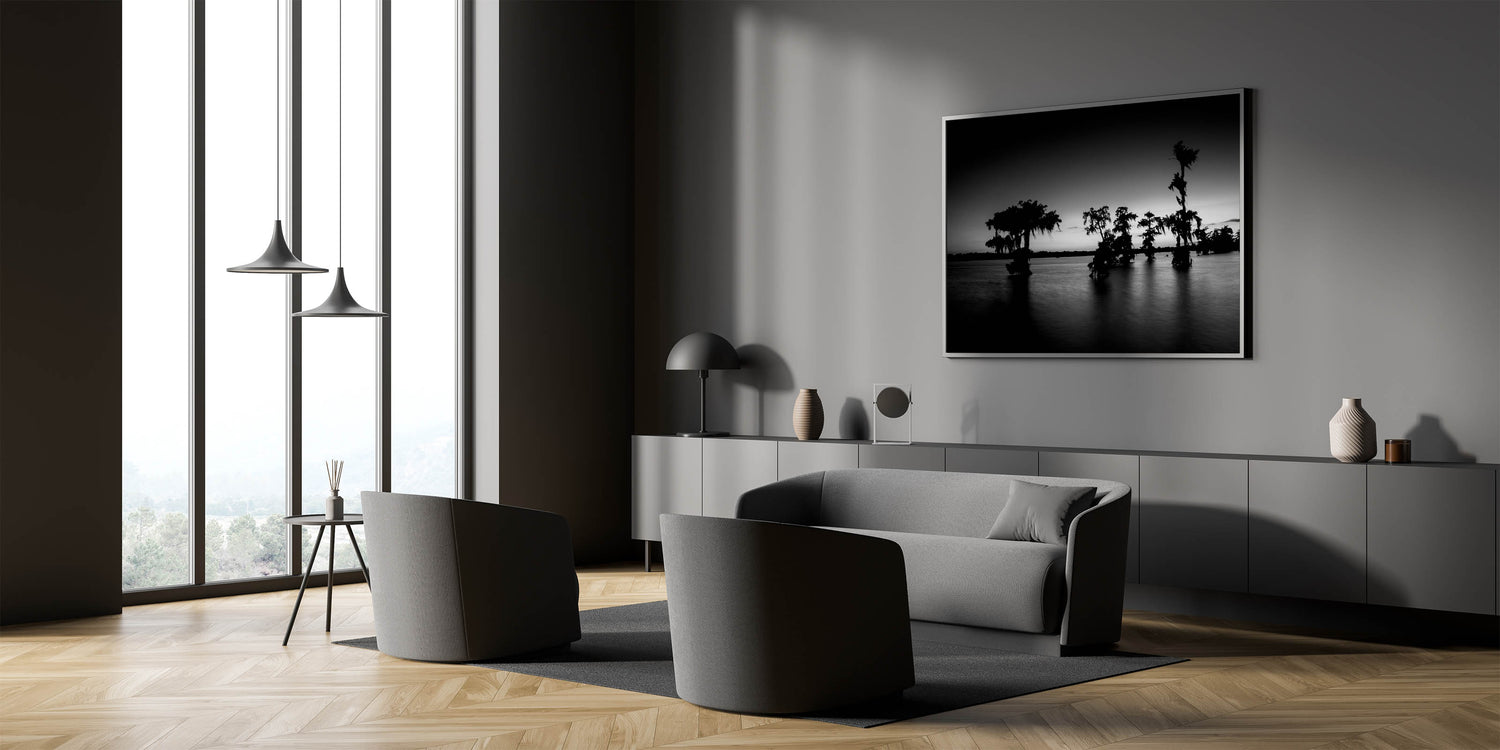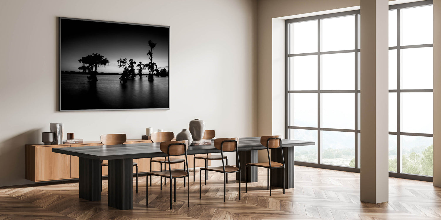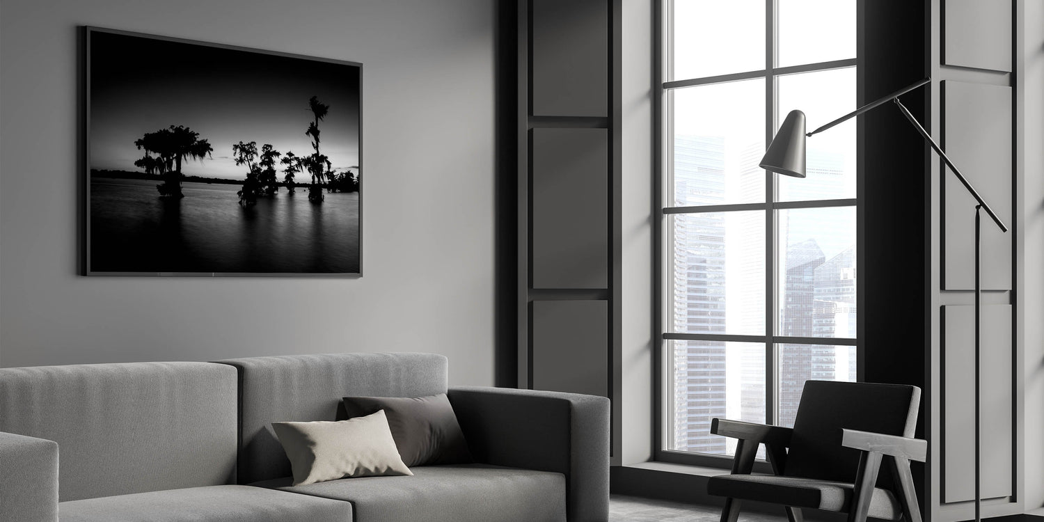 This Louisiana Scenic Photography artwork is a perfect fit for modern interiors, minimalist decor, or any space that celebrates the beauty of nature. Its timeless black-and-white palette brings a sense of calm and reflection to any environment, making it a versatile and stunning addition to your wall.