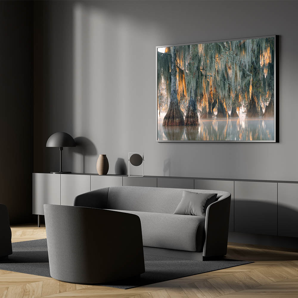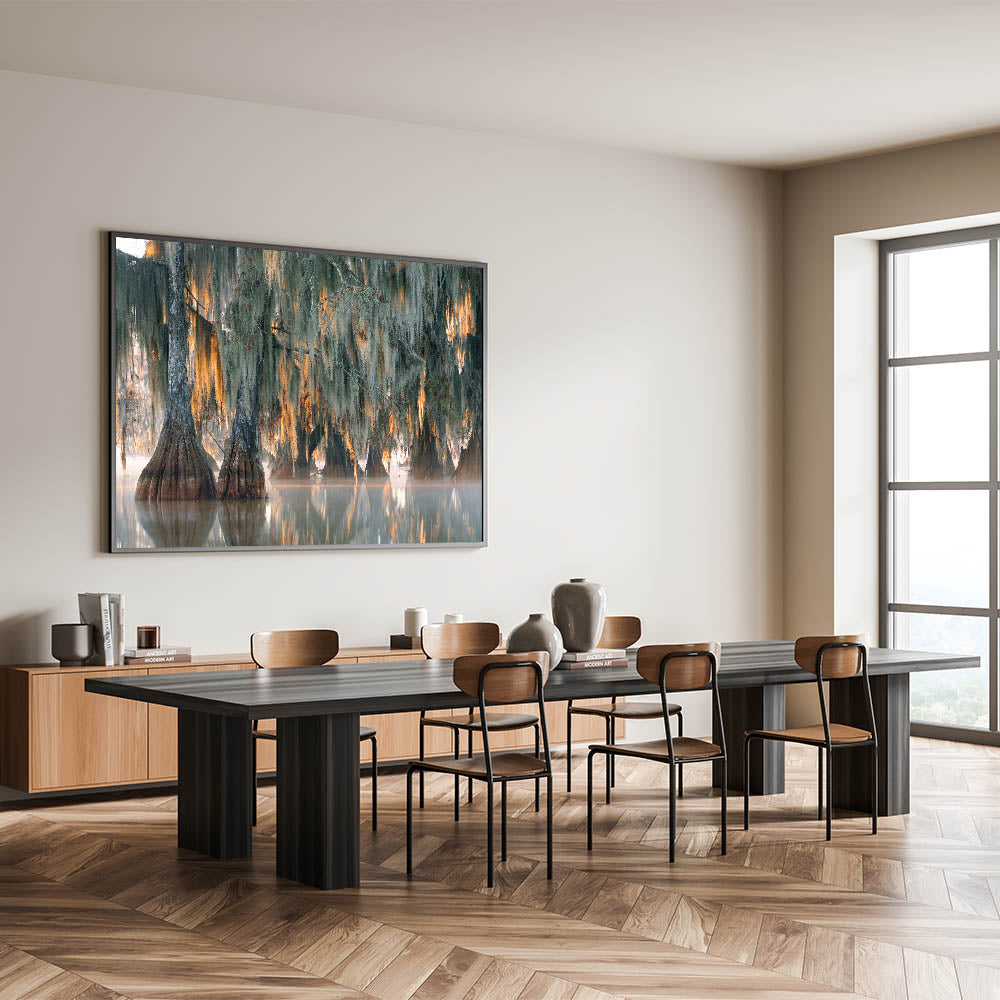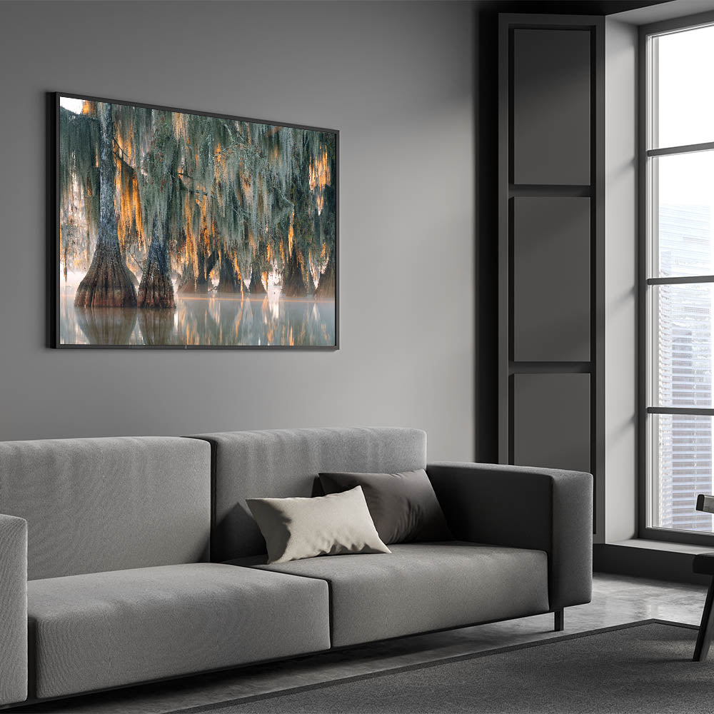 This stunning piece is a celebration of Louisiana's natural beauty, with its misty, reflective waters and majestic trees. Whether you’re a nature enthusiast or simply looking to bring a touch of tranquility into your home, this artwork is the perfect choice.