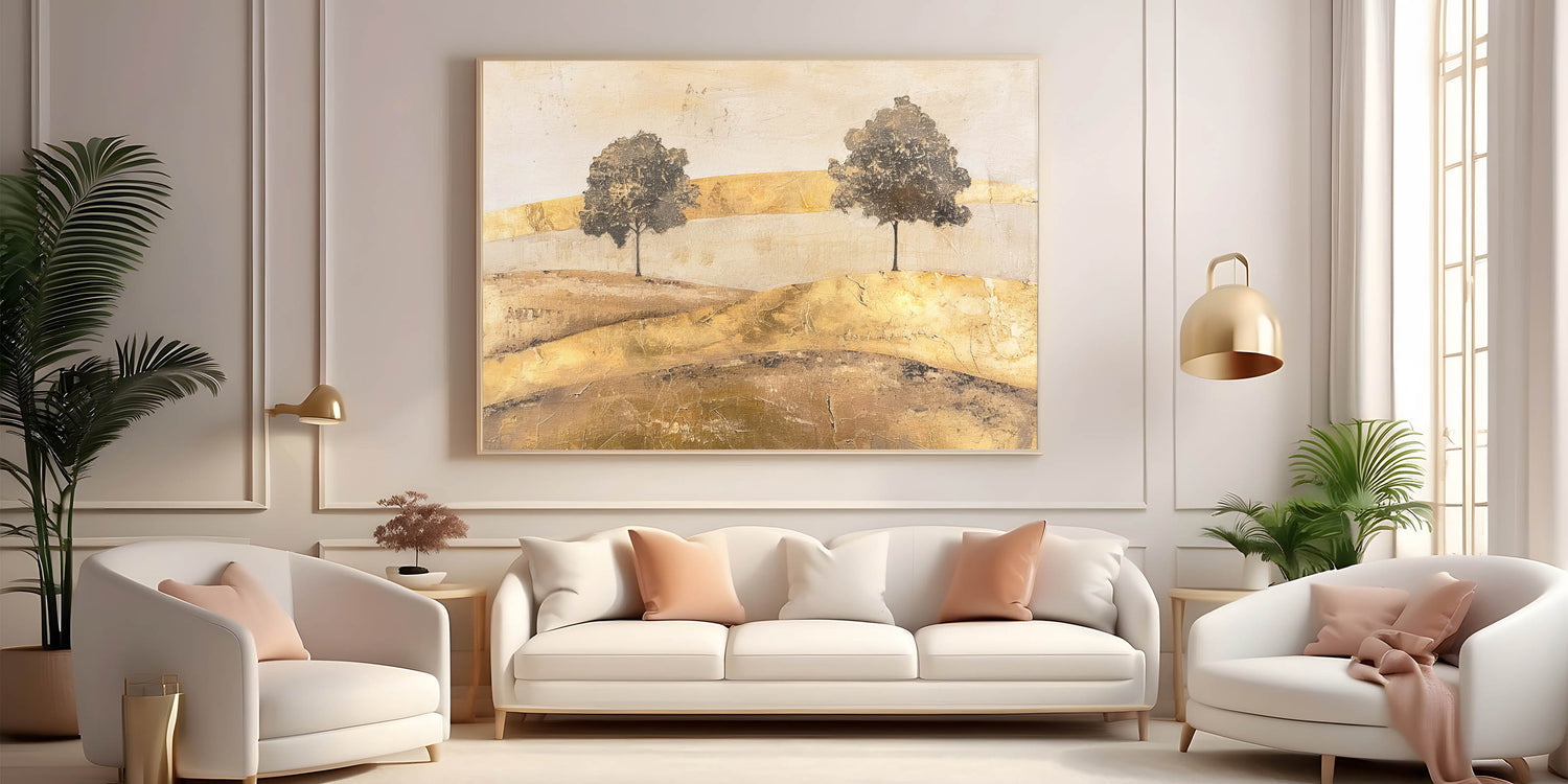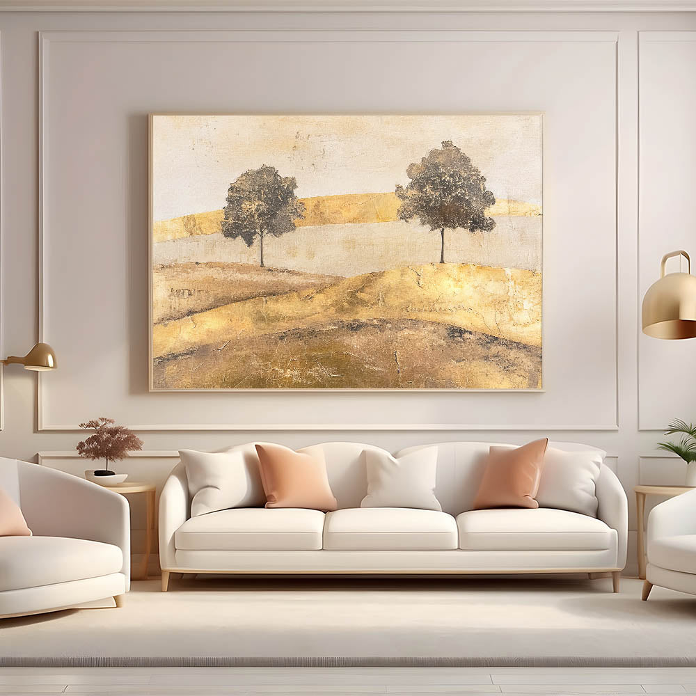 Abstract Landscape with Trees in Gold Tones - Modern Nature Wall Art