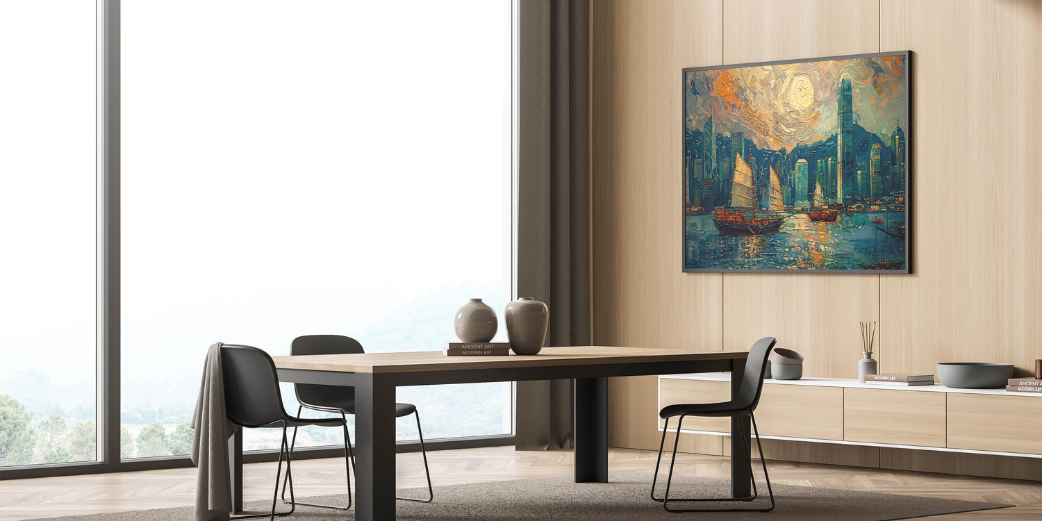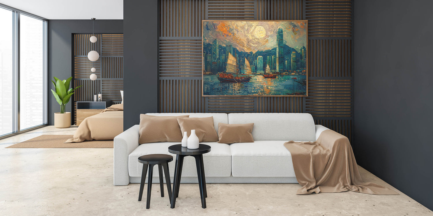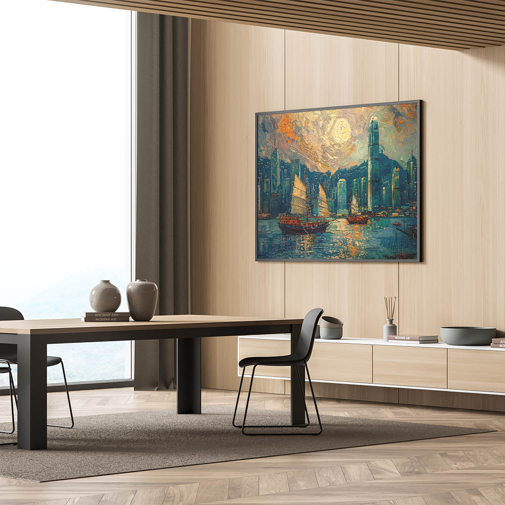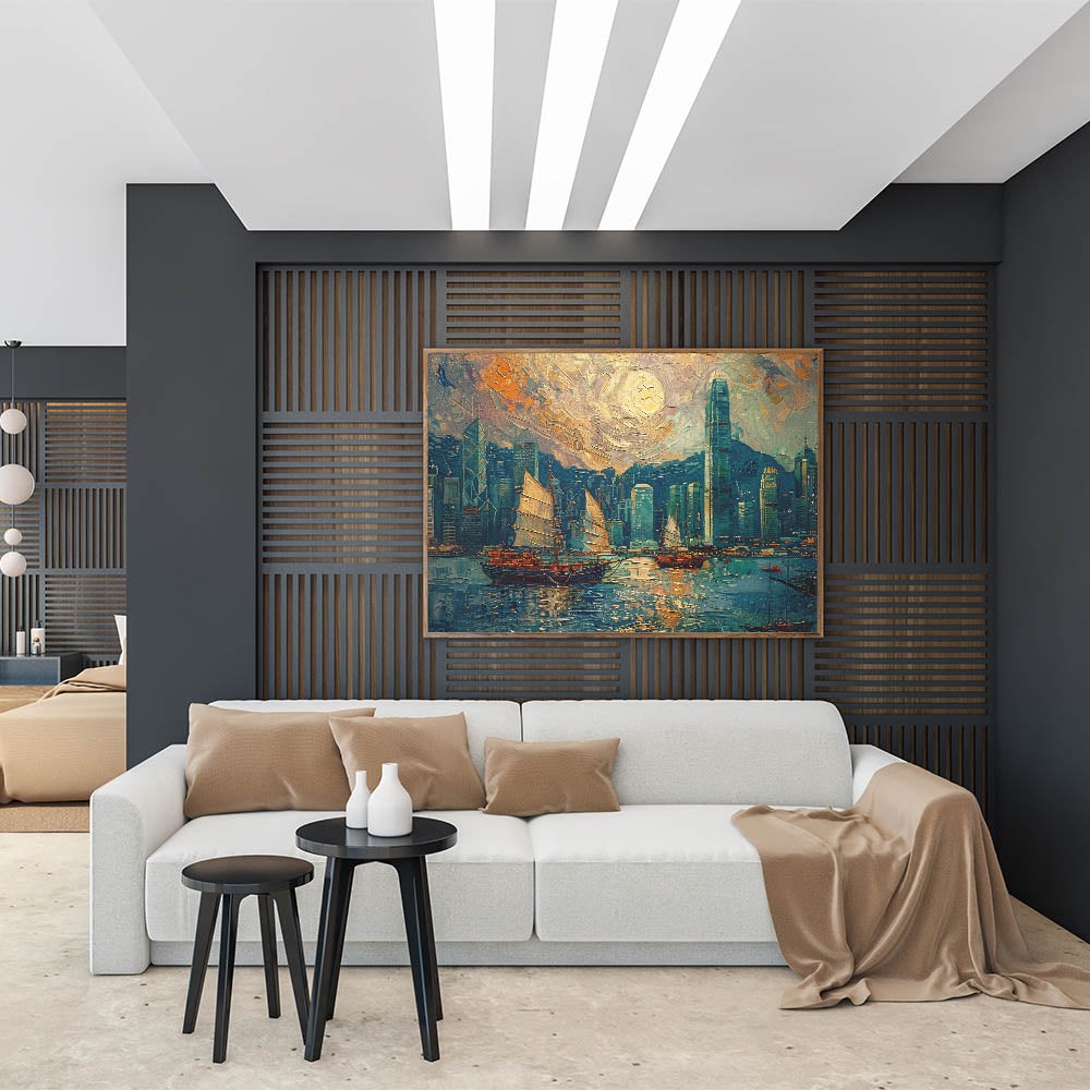 Ideal for living rooms, offices, or hallways, this coastal cityscape art adds a splash of color and a sense of adventure to any environment. Its rich textures and intricate details make it a perfect centerpiece for art lovers and city enthusiasts alike.