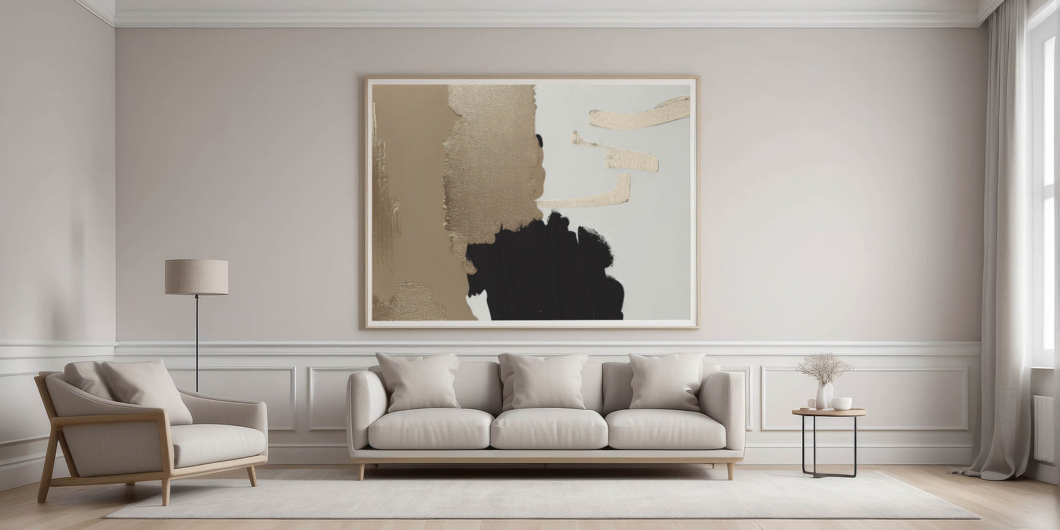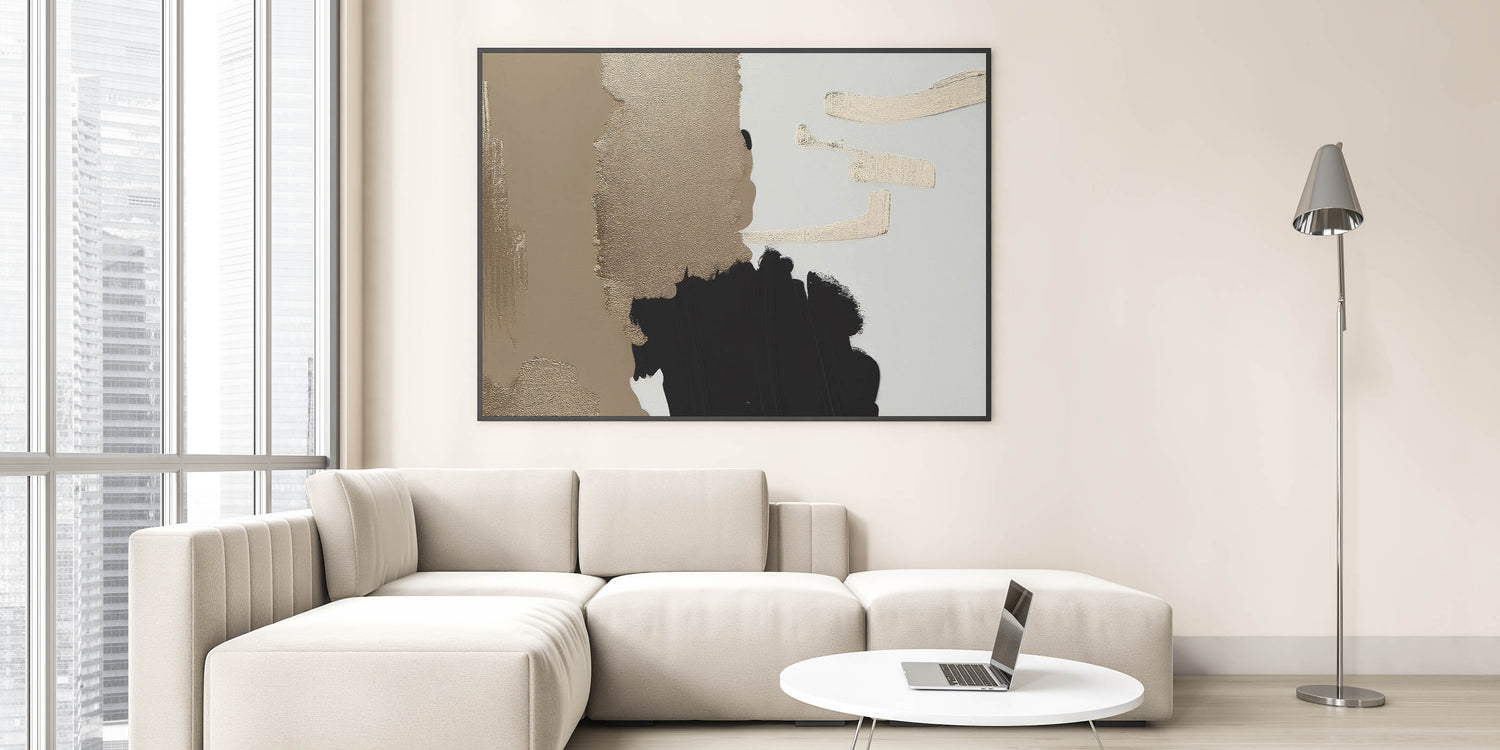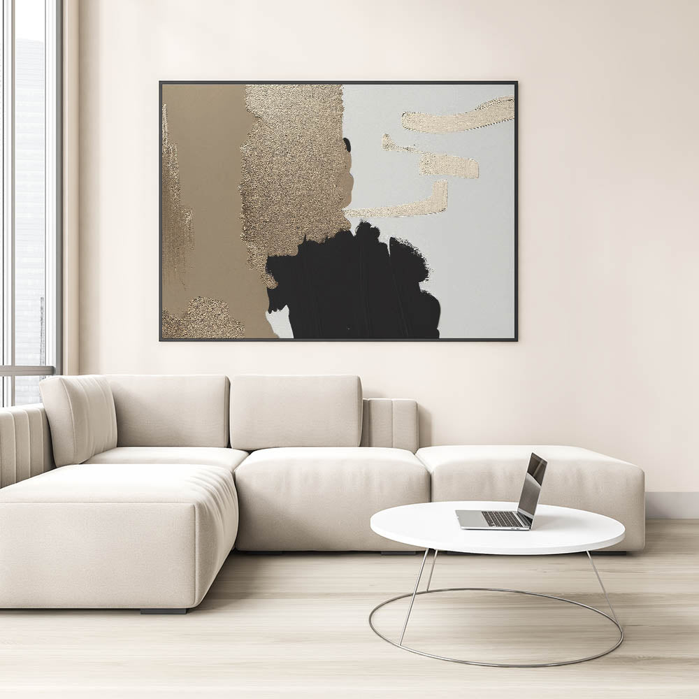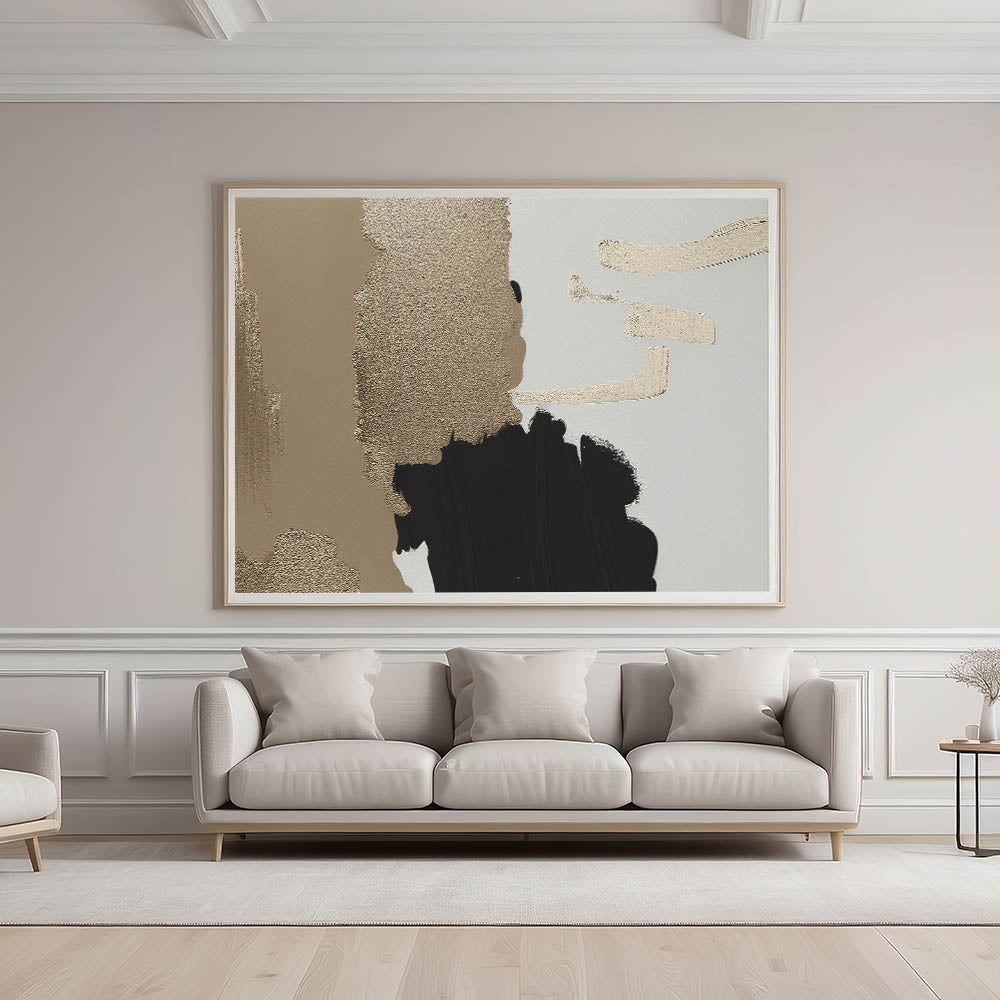 - Abstract Design: The interplay of black, gold, and neutral tones creates a captivating visual effect that draws the viewer in.