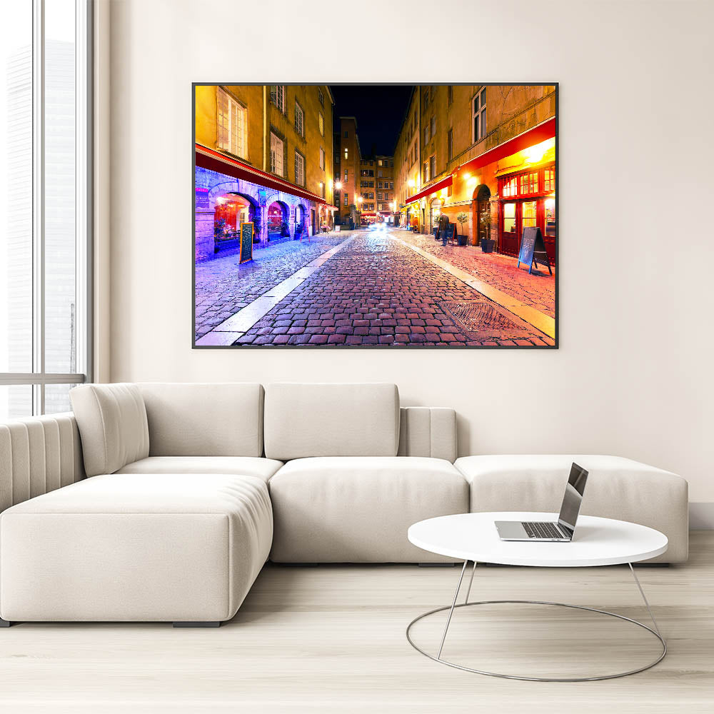 Lyon Cityscape Print – Vibrant Night Scene of Lyon’s Historic Streets