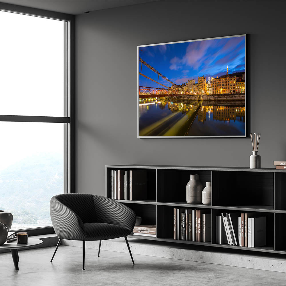 Transform your space with this breathtaking Lyon skyline painting featuring a stunning night view of the Saône River. This captivating Lyon landscape showcases the illuminated buildings and bridge reflecting off the calm waters, highlighting the architectural beauty of the city. Perfect for those who admire French decor and love serene cityscapes, this artwork adds a peaceful yet vibrant charm to any room.
