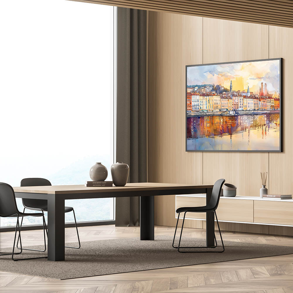 This scenic Lyon artwork is a must-have for anyone who loves French wall decor or is seeking to add a splash of color and charm to their home. The timeless combination of modern art and historic architecture makes this a standout piece in any collection.