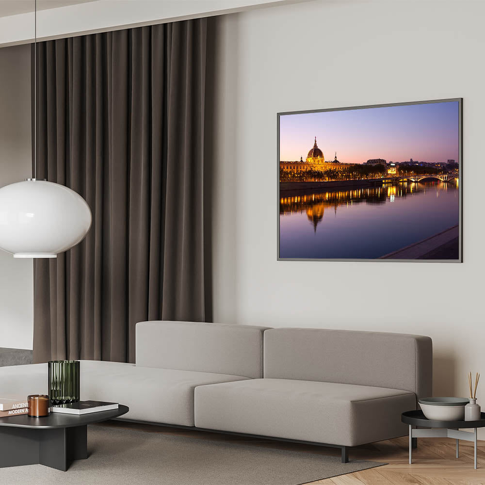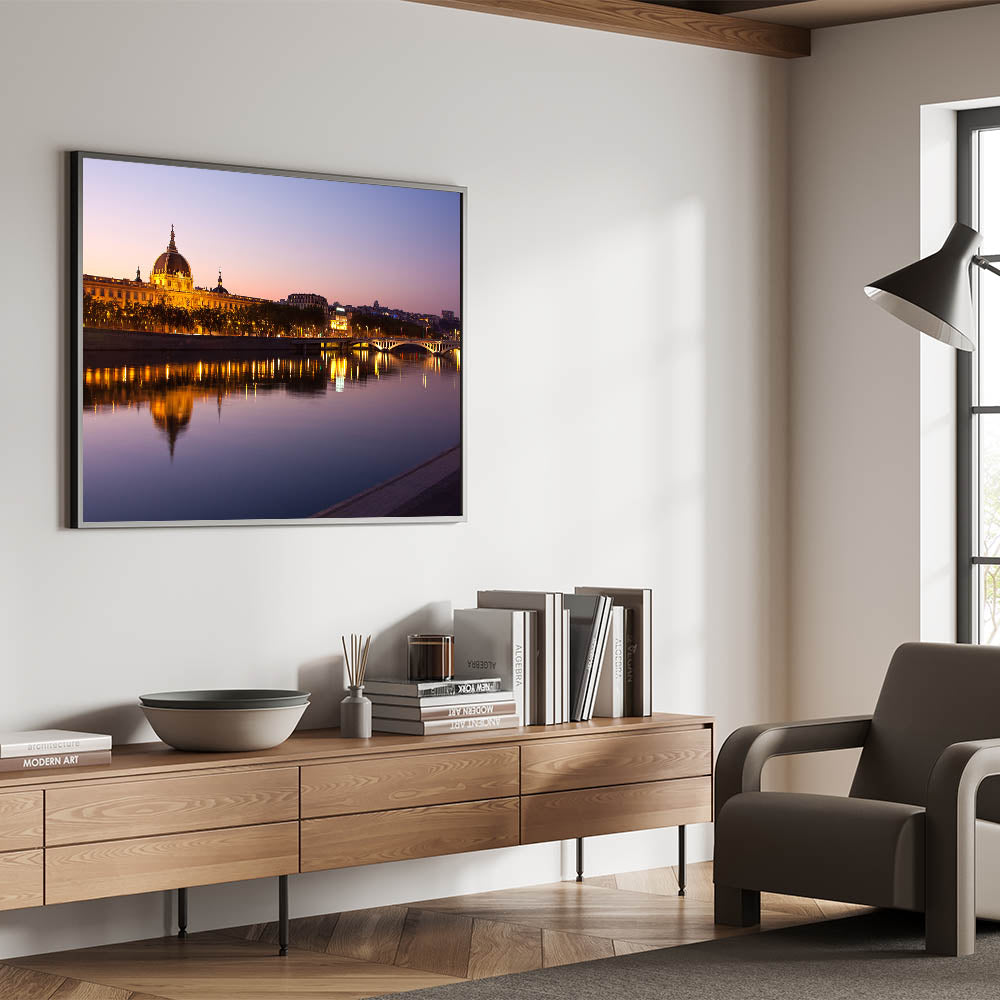 Bring the charm of Lyon into your home with this stunning wall art, showcasing the city’s iconic riverfront and historic architecture. This captivating Lyon landscape captures the tranquil beauty of the Rhône river as the lights of the city reflect across the water, creating a mesmerizing scene. The detailed Lyon city view at dusk offers a perfect blend of serenity and vibrant street life, making this an essential piece of French wall décor.