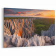 Bring the dramatic beauty of Madagascar's unique landscapes into your space with this stunning wall art featuring the awe-inspiring limestone formations, known as Tsingy. This extraordinary Madagascar Landscape Art captures the intricate details of the rugged limestone peaks under the warm hues of a breathtaking sunset, making it a striking centerpiece for any room. Part of our exclusive African Scenery collection, this print celebrates the raw natural beauty and geological wonders of Madagascar.