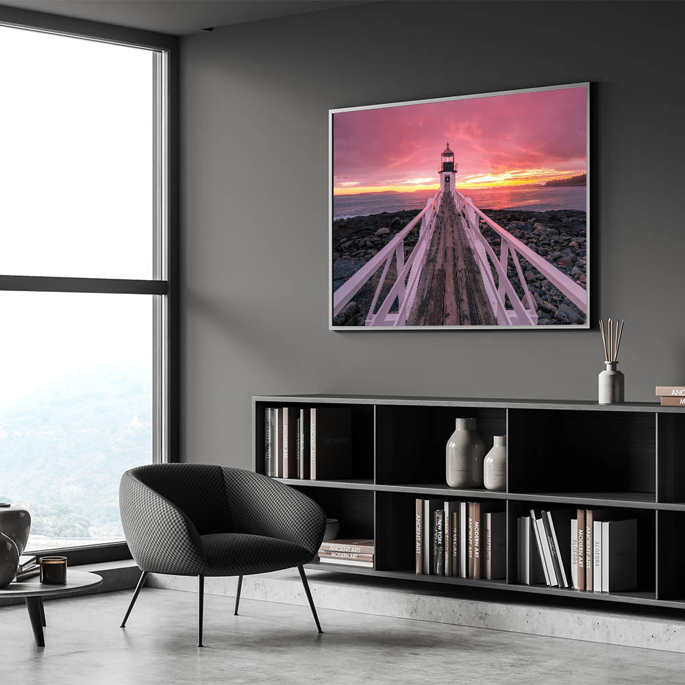 Capture the breathtaking beauty of Wellington Harbor art with this striking scene of a lighthouse bridge leading into a vibrant sunset. The intense hues of pink and orange light up the sky and reflect off the ocean, creating a stunning view that evokes a sense of peace and adventure. This New Zealand landscape painting is perfect for anyone looking to bring a burst of color and coastal charm into their home or office.