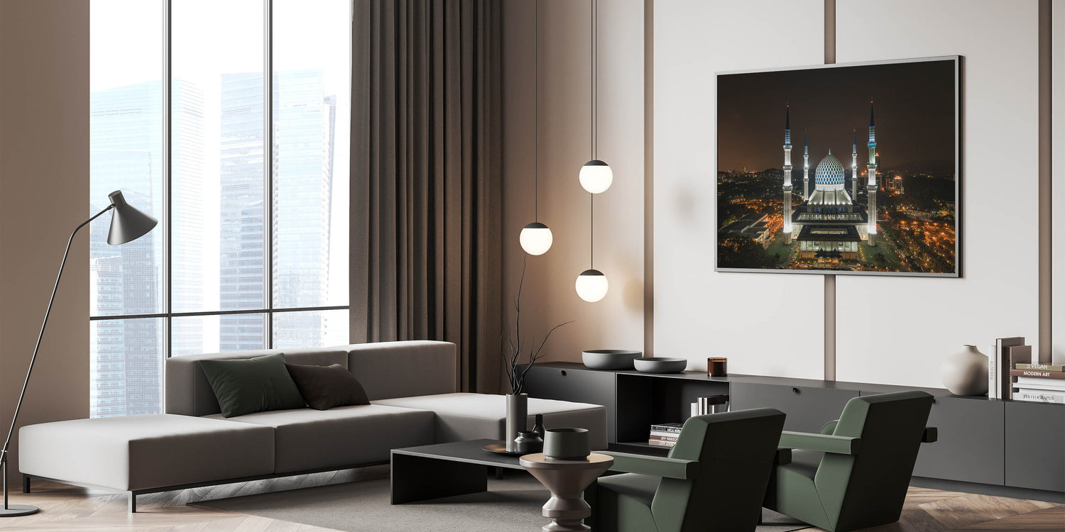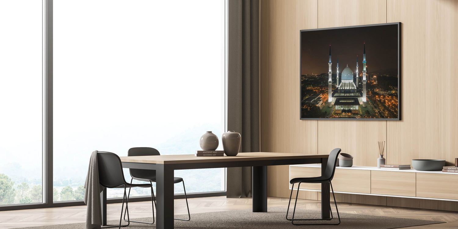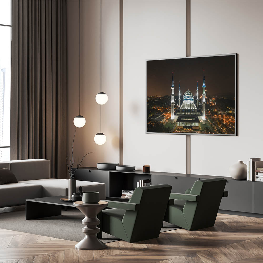 Perfect for those who appreciate architectural wonders and stunning night photography, this Malaysia art print will bring a touch of elegance and spiritual beauty to your living room, bedroom, or office. The glowing lights and peaceful ambiance make this artwork a captivating centerpiece for any room.