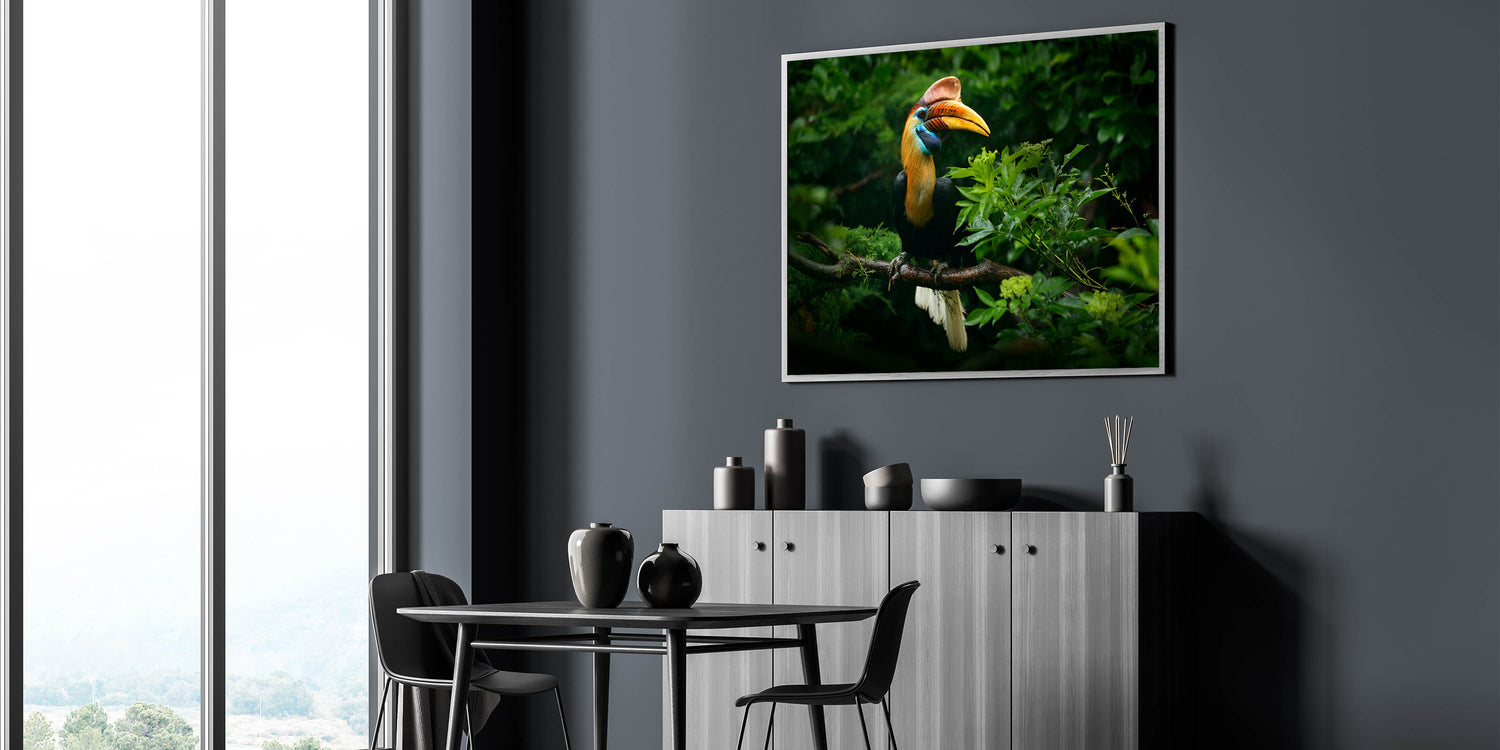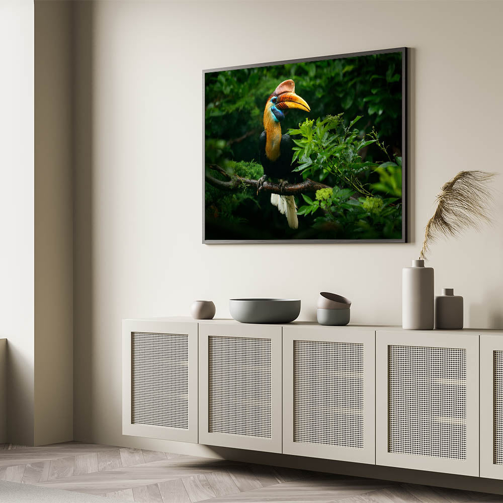 Malaysia Art Print – Vibrant Hornbill in Lush Greenery Wildlife Scene