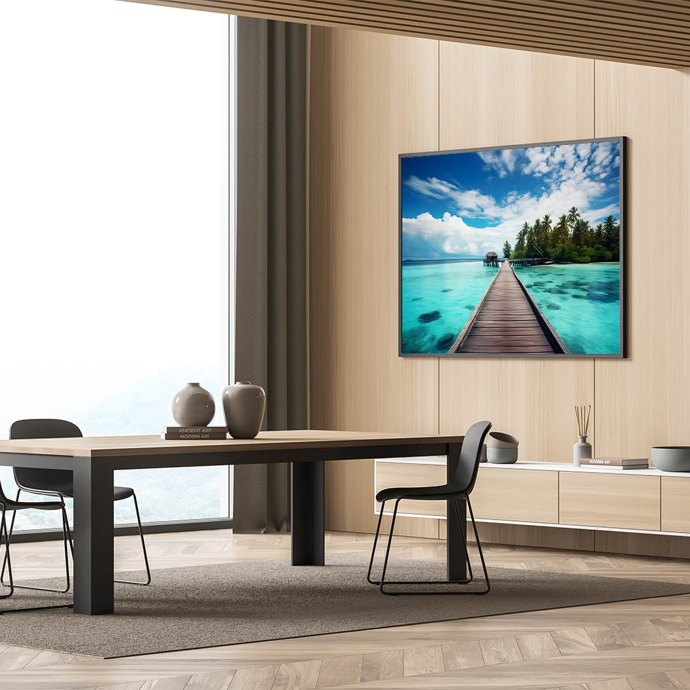Add this gorgeous Maldives wall art to your living room, bedroom, or office to bring a sense of calm and beauty to your space. The clear blue water and bright sky make this artwork a perfect choice for those seeking serene beach scenes and tropical vibes in their decor.