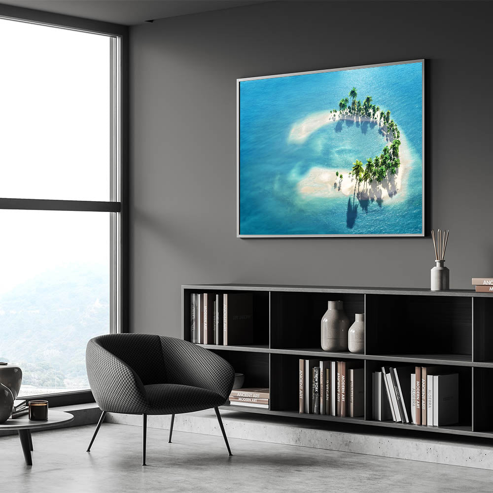 Transform your living space with this breathtaking Maldives wall art, featuring a serene tropical island surrounded by crystal-clear waters. This striking piece of art captures the essence of island paradise decor, making it perfect for any room in your home or office.