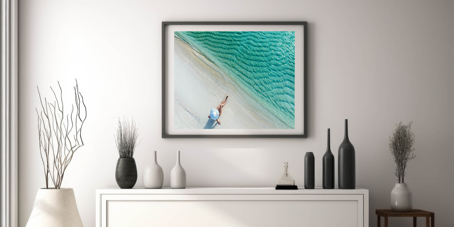Whether you're looking to enhance your living room, bedroom, or office, this relaxing beach print will transport you to the peaceful shores of the Maldives, making it the perfect addition to your decor.