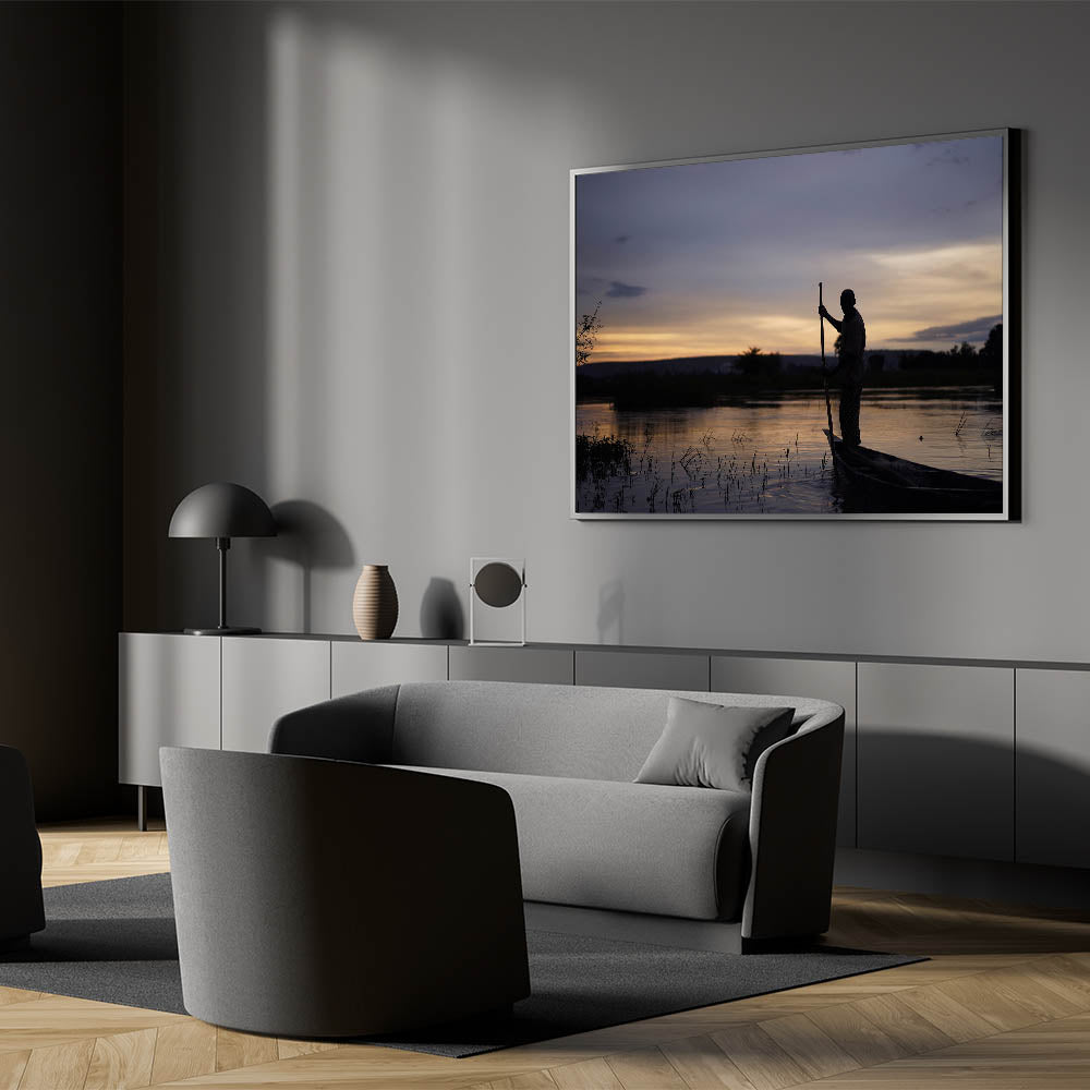This Mali sunset paddling wall art brings a sense of peace and connection to nature into your home, making it a valuable addition to your art collection.