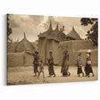 Step into the daily life of a traditional Malian village with this evocative wall art, capturing a moment of community and culture. The image features women and children walking through the village, with traditional thatched huts in the background, showcasing the architecture and lifestyle that has been preserved through generations. The earthy tones and sepia-like color palette give this photograph a timeless quality, making it a perfect piece for anyone who appreciates cultural history and the beauty of everyday life.