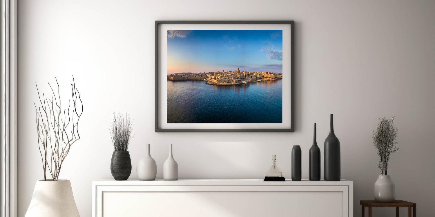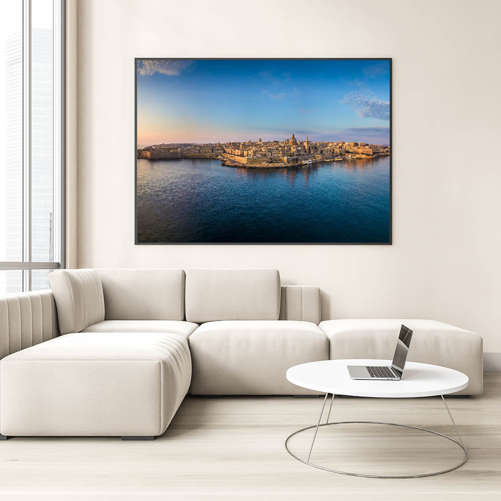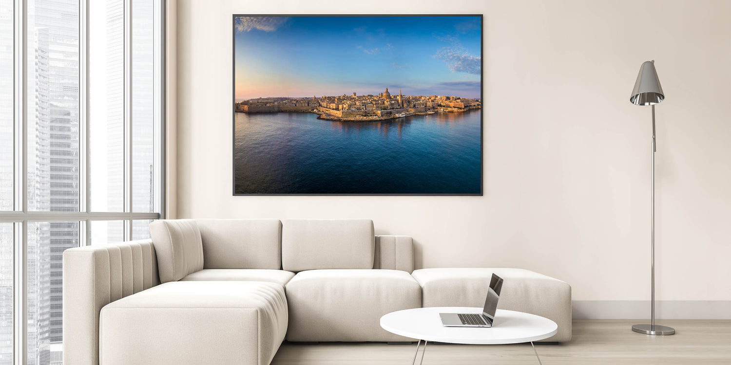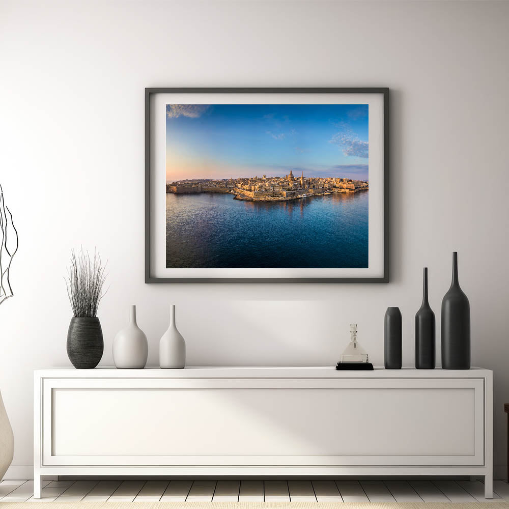 This beautiful sunrise view of Valletta brings a sense of peace and grandeur to any space. Whether for your living room, bedroom, or office, this artwork adds a touch of Mediterranean elegance and history to your decor.