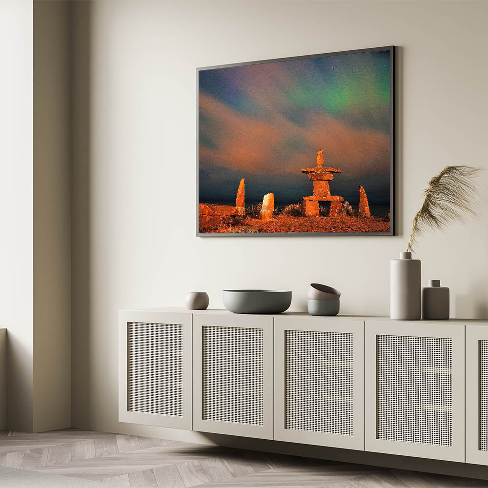 Manitoba Northern Lights and Inukshuk - Stunning Night Sky Wall Art