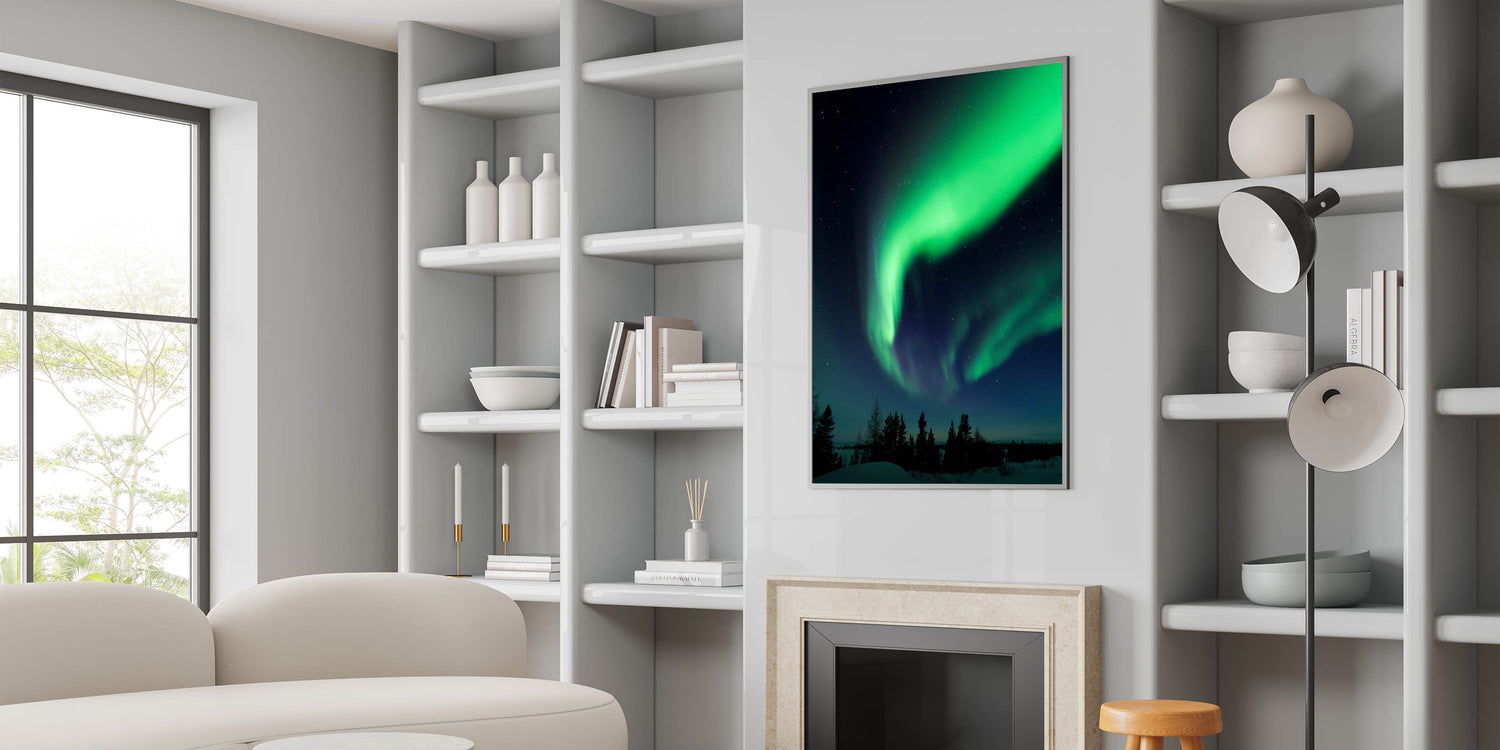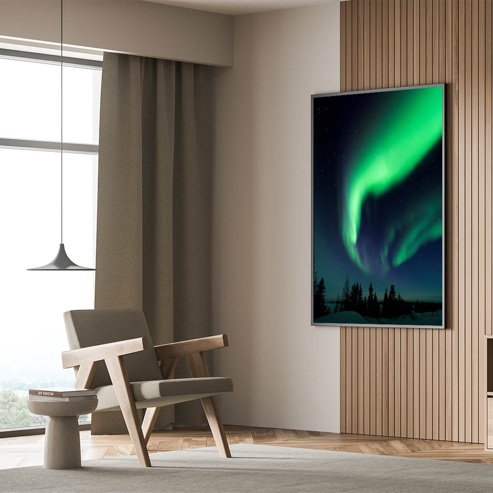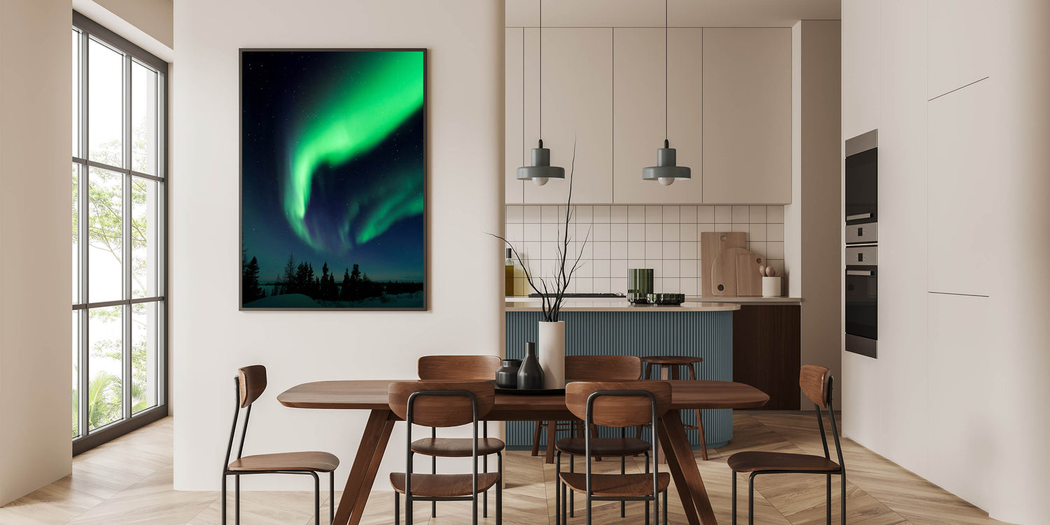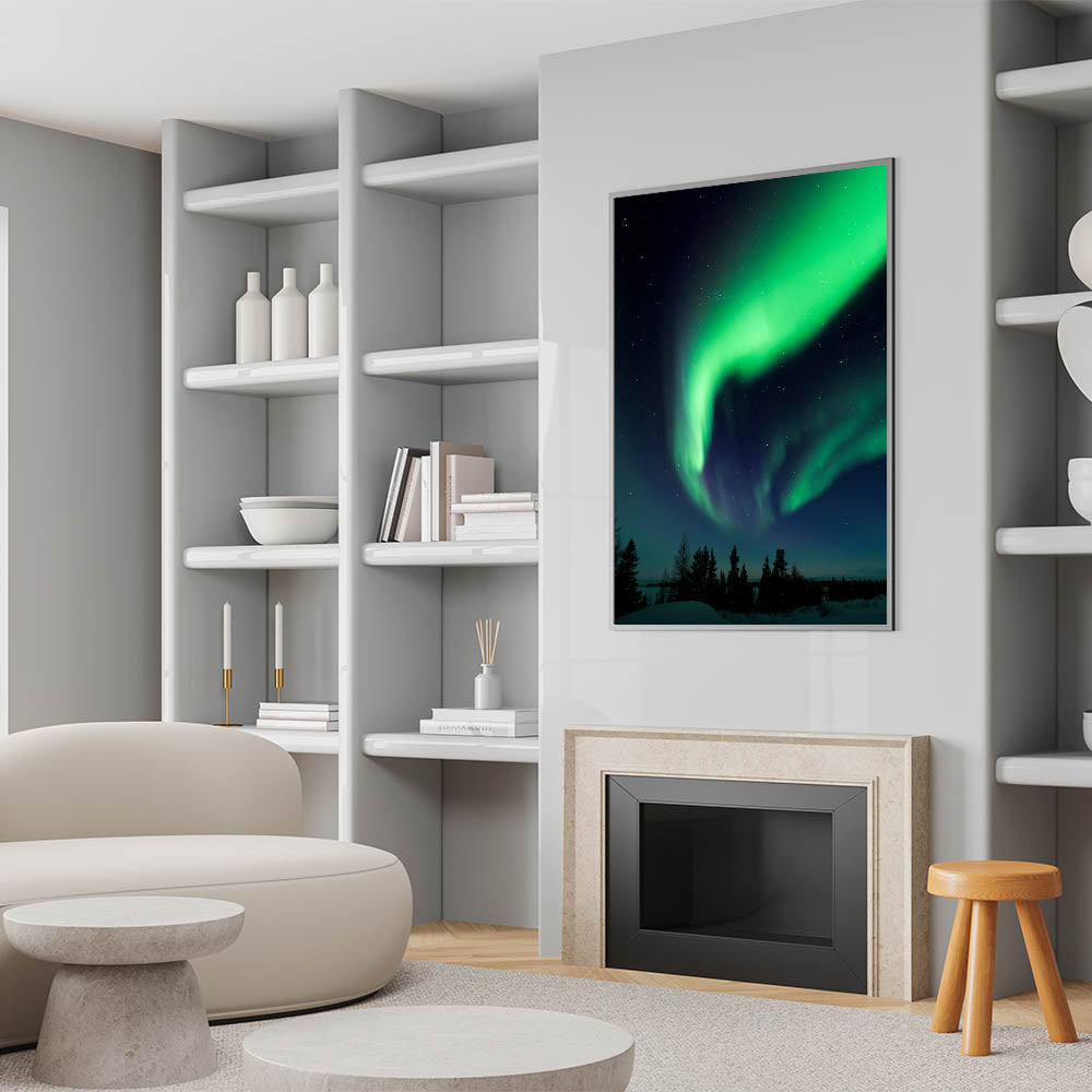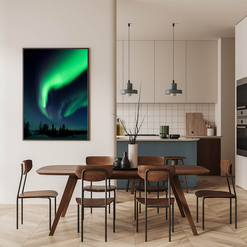 Bring the awe of the Northern Lights into your home with this striking wall art. Whether displayed in your living room, bedroom, or office, this piece will add a sense of wonder and beauty to any space. Experience the magic of Manitoba’s night sky today!