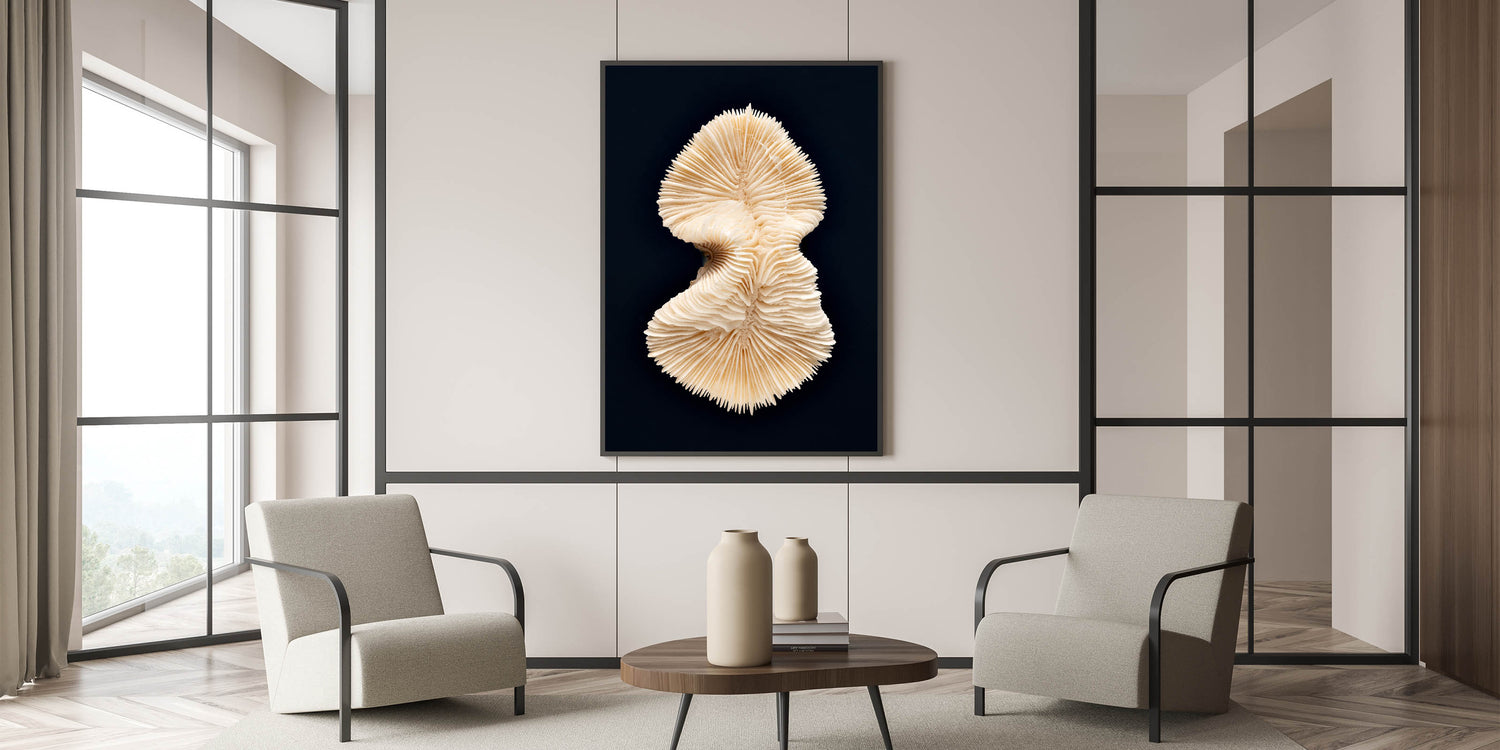 Introduce a touch of the ocean's beauty to your space with this captivating coral wall art. This stunning piece captures the intricate details and natural elegance of underwater coral, making it a perfect addition for marine life enthusiasts. Crafted with precision, this artwork is available in various formats, including stretched canvas, framed canvas, acrylic glass, and more.