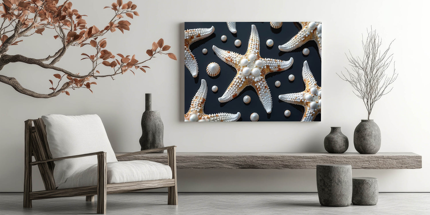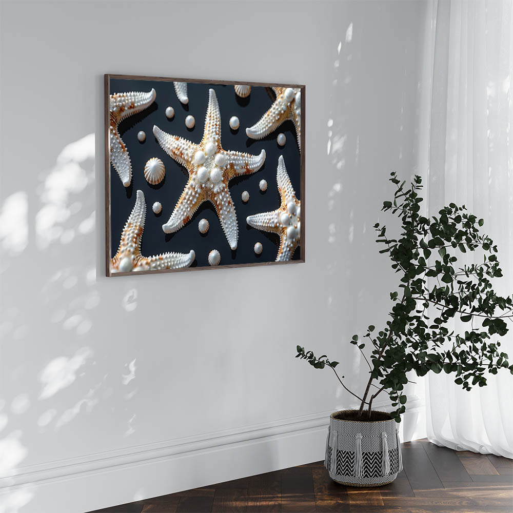 Elevate your decor with this beautiful starfish artwork, ideal for adding a touch of ocean-inspired sophistication to your home. Perfect for living rooms, bedrooms, or even office spaces, this piece will bring a sense of tranquility and elegance wherever it is displayed.