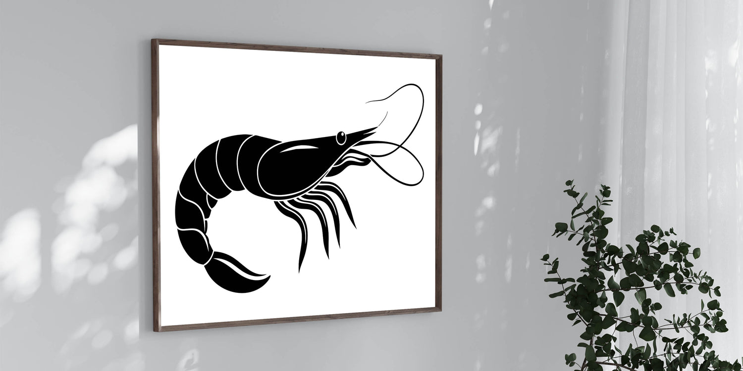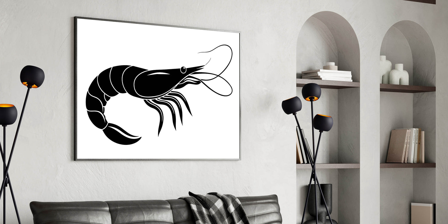 Transform your space with this minimalist shrimp art, perfect for creating a modern coastal atmosphere in your home or office.