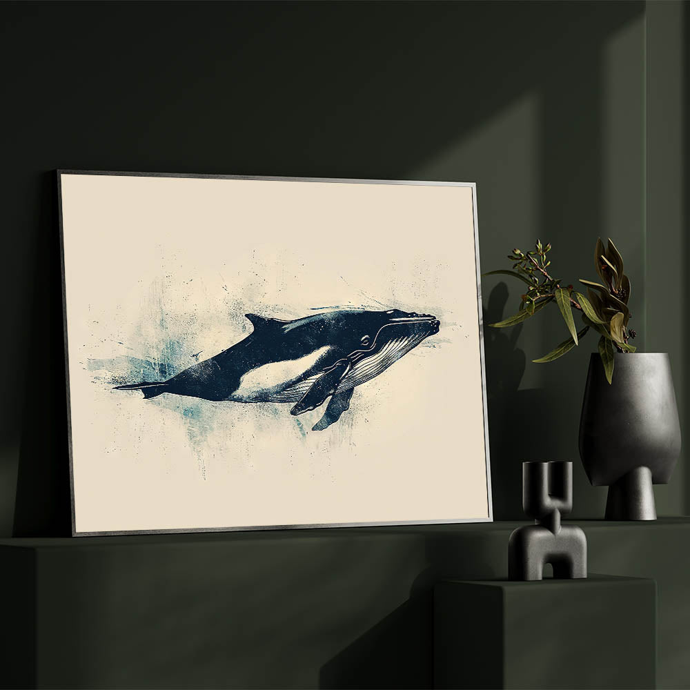 This orca artwork is more than just a decorative piece; it’s a symbol of the ocean’s serenity and the effortless beauty of nature. Whether you’re an ocean lover or a fan of minimalist design, this piece will enhance your space with its quiet elegance.