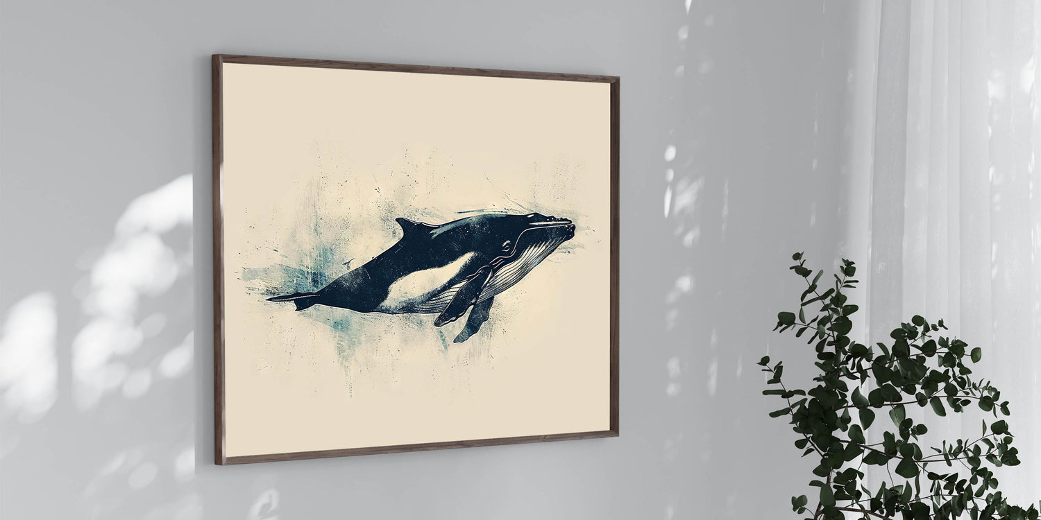 Elevate your space with the understated elegance of this minimalist orca wall art. This piece features a beautifully detailed orca gliding through the water, rendered in a simple yet impactful design that emphasizes the grace and majesty of these marine giants. The subtle hues and clean lines make this artwork a versatile addition to any room, perfect for those who appreciate both modern art and the beauty of the ocean.